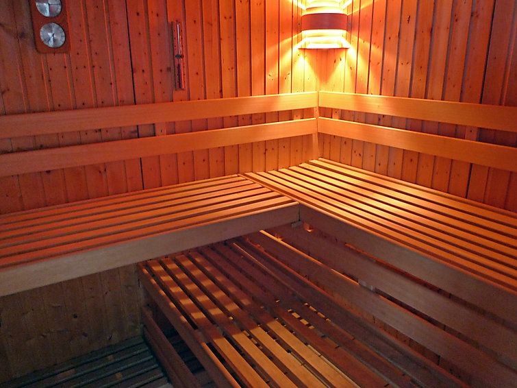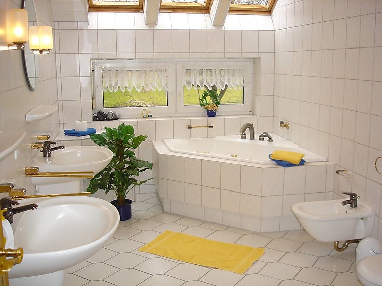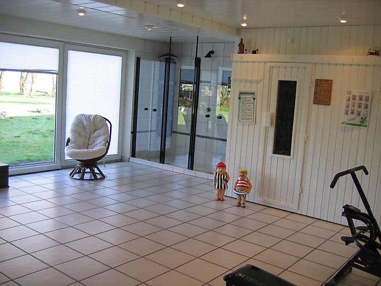 Casa pareada 7 estancias 235 m2 en 2 plantas, en la planta baja. Con mobiliario de buen gusto: salón con TV satélite, equipo de música y DVD. 1 dorm. con 1 cama doble (2 x 90 cm, 200 cm de longitud). Cocina (horno, lavavajillas, 4 placas de vitrocerámica, microondas, cafetera eléctrica) con mesa de comedor. Baño/ducha/bidet/WC, doble lavabo, bañera de hidromasaje. Planta superior: 3 dorm., abuhardillados, cada habitación con 1 cama doble (2 x 90 cm, 200 cm de longitud). WC separado. Barbacoa (portátil), tumbonas, invernadero, trastero. El alojamiento dispone de: lavadora, sauna, cuna, secador de pelo. Garaje en el mismo terreno. A tener en cuenta: casa para no fumadores. Permitido máximo 1 mascota / perro. Detector de humo. El sistema estéreo del salón tiene un Dolby Surround System. En la planta baja de la casa hay un bonito jardín de invierno con rincón para sentarse, bar, radio/CD y gimnasio (51 m2) con sauna, 2 duchas, área de reposo, varios equipos de gimnasio, bar, equipo estéreo y salida al jardín -todo gratuito-.