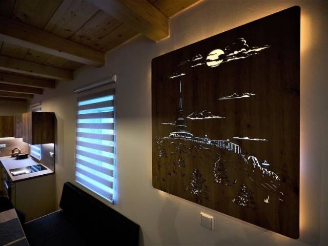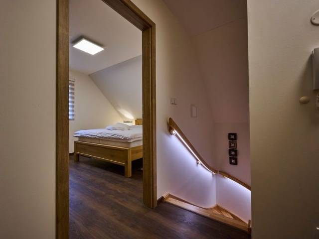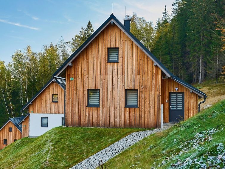 "Chaloupka U lesa", casa 3 estancias. Salón grande con chiminea nórdica, mesa de comedor, TV satélite y equipo de música. Salida a la terraza. Rincón-cocina (lavavajillas, 4 placas de vitrocerámica, tostadora, hervidor de agua eléctrico, congelador, microondas/grill). Ducha/WC. Planta superior: 1 dorm. con 1 cama y 1 cama doble. 1 dorm. con 2 camas. Ducha/WC. Calefacción eléctrica, calefacción de leña, calefacción por el suelo. Terraza. El alojamiento dispone de: Internet (Wifi, gratis). A tener en cuenta: casa para no fumadores.