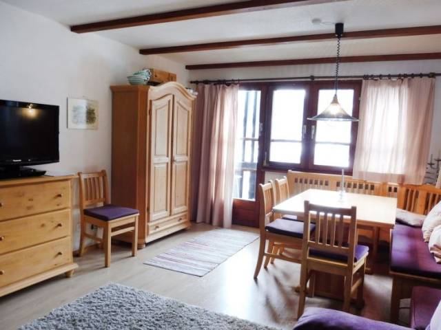 Apartamento de 3 estancias 81 m2 en 2 plantas. Parcialmente reformado en 2012: salón-comedor con TV cable (pantalla plana), radio, CD y DVD. Cocina (horno, lavavajillas). Baño/WC. Planta superior: 1 dorm. doble. 1 dorm. con 2 camas y 1 sofá-cama. Rincón-dormitorio abierto con 1 cama. Ducha/WC. Balcón. Muebles de terraza. Vista muy bonita a las montañas. El alojamiento dispone de: Internet (Wifi). Lector de Blu-ray. Garaje n. 110. A tener en cuenta: apartamento para no fumadores. 1 mascota / perro.