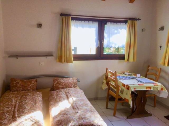 "Häuschen Stadel", chalet de madera estudio 18 m2. Con mobiliario sencillo y agradable: salón-dormitorio con 1 cama doble y TV satélite (pantalla plana), radio. Salida al jardín, a la terraza-jardín. Rincón-cocina (horno, 4 placas de vitrocerámica, microondas, cafetera eléctrica, horno Raclette, set de Fondue (queso)) con mesa de comedor. Ducha/WC. Terraza-jardín 50 m2. Muebles de terraza, tumbonas (2). Vista bonita a las montañas y al paisaje. El alojamiento dispone de: secador de pelo. Internet (Wifi, gratis). Plaza de aparcamiento junto a la casa. A tener en cuenta: apartamento para no fumadores.