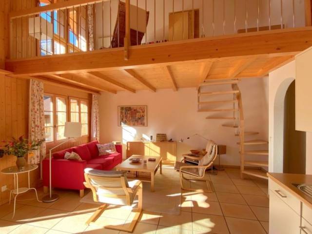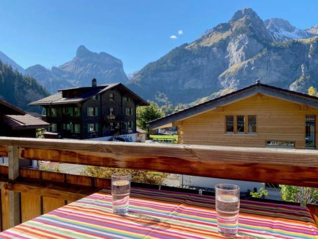 Chalet tipo suizo "Haus Lohnerblick", bonito de 3 plantas. En la localidad, a 500 m del centro, lugar tranquilo, soleado en un barrio residencial, a 200 m de un bosque. En el inmueble: sala para guardar bicicleta, sala guardaesquís, lavadora, secadora (uso comunitario), secadero. Aparcamiento junto a la casa. Tienda, restaurante 400 m, estación de tren "Kandersteg" 700 m, piscina 800 m. Tenis 800 m, rutas de senderismo desde la casa 50 m, telecabina 1 km, remontes 1 km, pista de esquí de fondo 50 m, pista de hielo 800 m, parque infantil 200 m. Atracciones en los alrededores: Oeschinensee, Blausee. Zonas de esquí populares fácilmente accesibles: Nordic Arena Kandersteg, Adelboden-Lenk. Zona de senderismo Sunnbüel - Gemmi, Gasterntal. Apartamento en dos niveles 4 estancias 110 m2 en 2 plantas, en planta superior. Espacioso y luminoso, parcialmente abuhardillado, con mobiliario muy confortable y de buen gusto: salón-comedor abierto con rincón-comedor, TV cable, radio y equipo de música. Salida al balcón. 1 dorm. con 2 camas (90 cm, 200 cm de longitud). Sala de juegos pequeña. Cocina abierta (horno, lavavajillas, 4 placas de vitrocerámica, hervidor de agua eléctrico, cafetera eléctrica, Cápsulas de café (Nespresso) extra, horno Raclette, set de Fondue (queso)). Baño/ducha/WC. Calefacción por suelo. Planta superior: altillo abierto con ventanal. 1 dorm. con 2 camas (90 cm, 200 cm de longitud). Ducha/WC. Balcón, orientación sur y orientación oeste. Muebles de balcón. Vista panorámica espléndida a las montañas y al paisaje. El alojamiento dispone de: secador de pelo. Internet (Wifi, gratis). Plaza de aparcamiento (1 coche) junto a la casa. A tener en cuenta: apartamento para no fumadores.