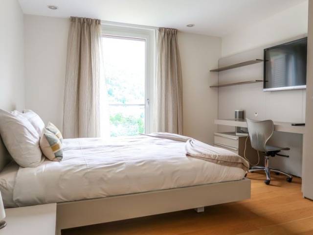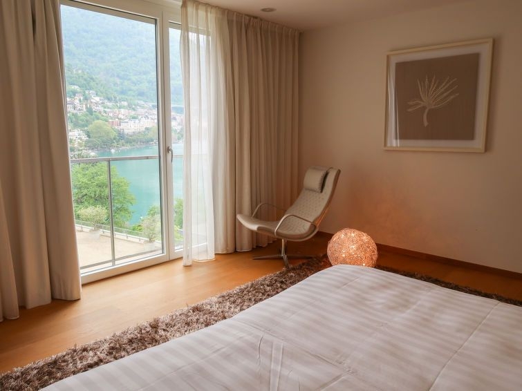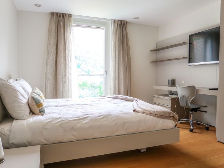 "L'Esplanade A3.8", apartamento de 5 estancias 210 m2 en el 3° piso, orientación sureste. Con mobiliario lujoso y de buen gusto: salón-comedor grande con TV, calefacción de gas y persianas eléctricas. Salida al balcón. 1 dorm., grande con puerta corredera con 1 cama doble (2 x 100 cm, 200 cm de longitud), baño/ducha/WC y doble lavabo. Salida al balcón. 1 dorm. con 1 cama doble (2 x 100 cm, 200 cm de longitud), baño/ducha/WC y doble lavabo. 1 dorm. con 1 cama doble (160 cm, 200 cm de longitud), baño/ducha/WC, doble lavabo y TV. 1 dorm. con 1 cama doble (2 x 100 cm, 200 cm de longitud), baño/ducha/WC y doble lavabo. Grande cocina abierta (horno, lavavajillas, 5 placas de vitrocerámica, tostadora, hervidor de agua eléctrico, microondas, congelador, cafetera eléctrica, Cápsulas de café (Nespresso) extra) con barra americana. Ducha/WC. Balcón 20 m2. Muebles de balcón. Vista espléndida al lago, a las montañas, al paisaje y a la localidad. El alojamiento dispone de: Internet (Wifi, gratis). Garaje n. 68 + 69 en el mismo terreno (2 Coches). A tener en cuenta: apartamento para no fumadores.