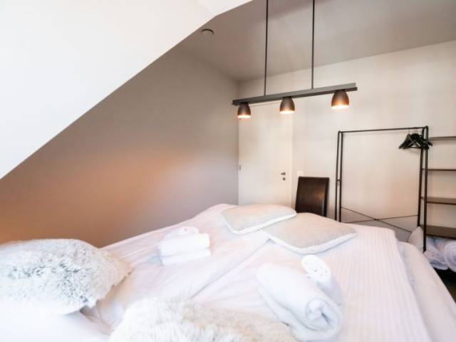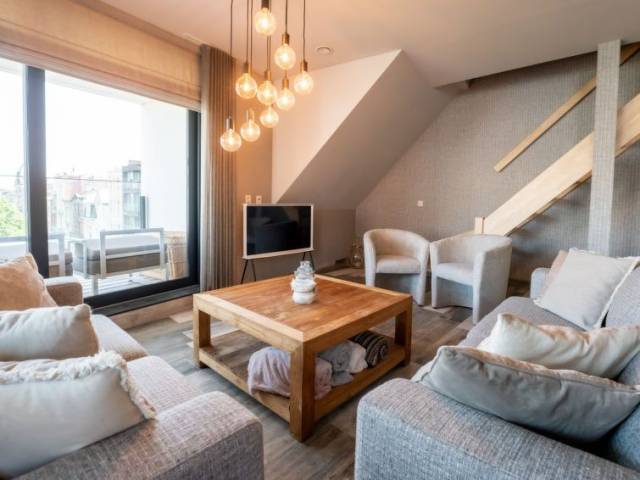 "Rochusview.be with parking", ático de 4 estancias 126 m2 en el 4° piso. Espacioso y luminoso, con mobiliario moderno y agradable: entrada con WC separado. Salón-comedor con TV, TV digital y canales internacionales (pantalla plana). Salida a la terraza. 1 dorm. doble con 1 cama doble (160 cm, 200 cm de longitud). 1 dorm. doble con 1 cama doble (160 cm, 200 cm de longitud). 1 dorm. doble con 2 camas (90 cm, 200 cm de longitud). Cocina abierta (lavavajillas, 4 Placas de inducción, tostadora, hervidor de agua eléctrico, congelador, cafetera eléctrica, olla a vapor, microondas/grill). Ducha/WC, media bañera, WC separado. Calefacción. Terraza grande 35 m2. Muebles de terraza. Vista bonita al ciudad. El alojamiento dispone de: lavadora, secadora, plancha, secador de pelo. Internet (Wifi, gratis). Garaje. A tener en cuenta: apartamento para no fumadores. Detector de humo, extintores.