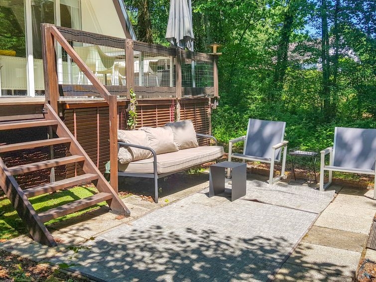 Complejo vacacional "Sunclass Durbuy", rodeado de árboles. En las afueras de la localidad, a 3.3 km del centro de Durbuy, en un bosque. Comunitario: terreno con hierba, piscina cubierta climatizada (20 x 10 m, Disponible por temporada: 01.Ene. y 31.Dic. horario piscina: 10:00-18:00). Tenis, tenis de mesa, campo de voleibol, parque infantil. En el complejo: recepción, restaurante, lavadora, secadora (uso comunitario, extra). Tienda 3 km, supermercado 3 km, restaurante 3 km, parada de autobús 2 km, estación de tren 5 km, piscina 9 km. Campo de golf 6 km, centro ecuestre 3 km. Atracciones en los alrededores: Adventure Valley Park 2 km, Het Labyrint van Barvaux 6.6 km, Grotten van Hotton 13 km, Natuurpark Chlorophylle 30 km, Peter-de-Grote-Bron 44 km, Plopsa Coo 46 km. Zonas de esquí populares fácilmente accesibles: Baraque de Fraiture 37 km. Grupos de jóvenes sólo bajo petición. "Frui Cotidie", casa 3 estancias 75 m2 en 2 plantas. Abuhardillada, con mobiliario confortable: salón-comedor con mesa de comedor, pantalla plana, CD y DVD. Salida al balcón, a la terraza. Cocina abierta (4 fogones, lavavajillas, microondas). Ducha/WC. Calefacción. Planta superior: (escalera empinada) 1 dorm. doble, abuhardillado con 2 camas (90 cm, 200 cm de longitud). 1 dorm. doble, abuhardillado con 1 cama doble (1 x 160 cm, 200 cm de longitud). Balcón terraza. Muebles de terraza, muebles de balcón. Vista al bosque. El alojamiento dispone de: trona, cuna, secador de pelo. Internet (Wifi, gratis). Lector de Blu-ray, base de iPod. Plaza de aparcamiento (2 Coches) junto a la casa. A tener en cuenta: casa para no fumadores. Detector de humo.