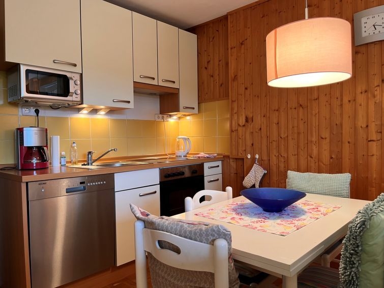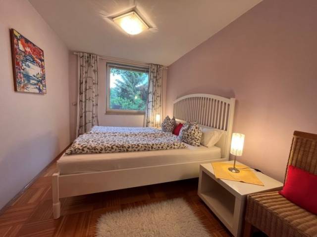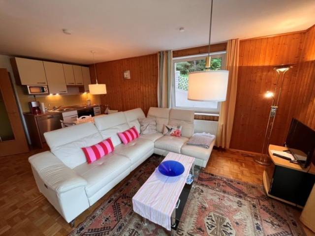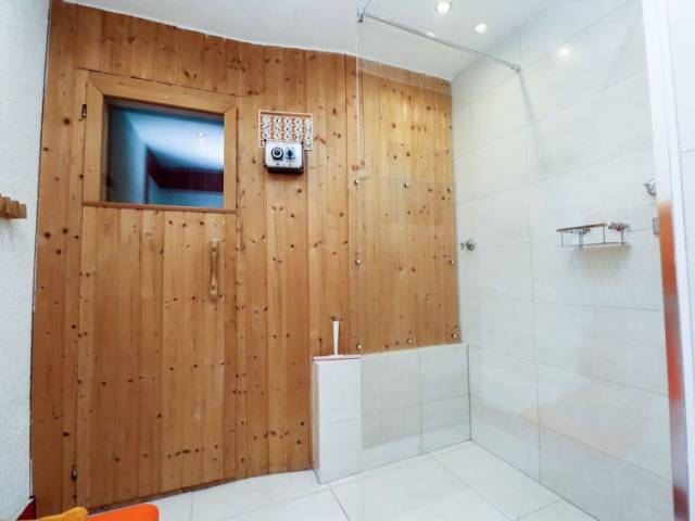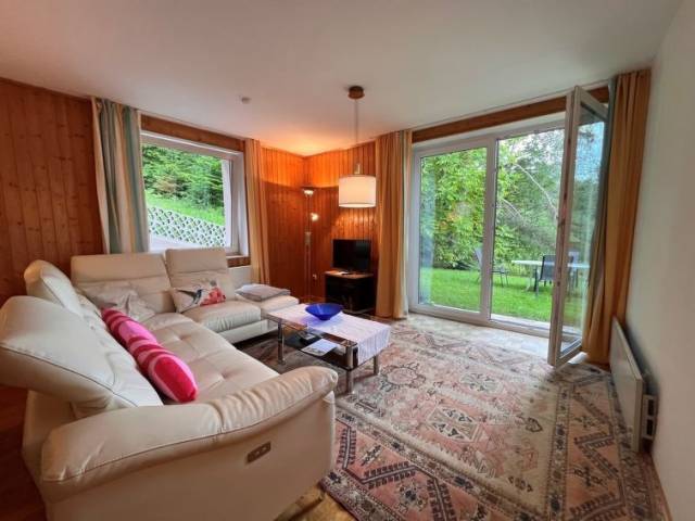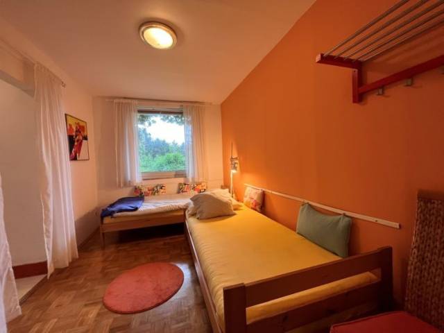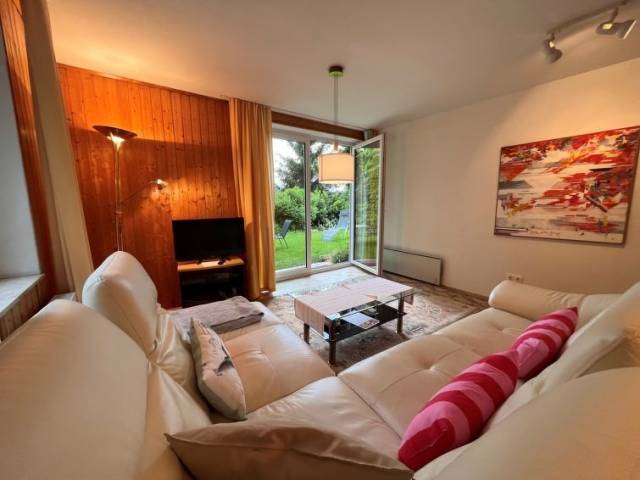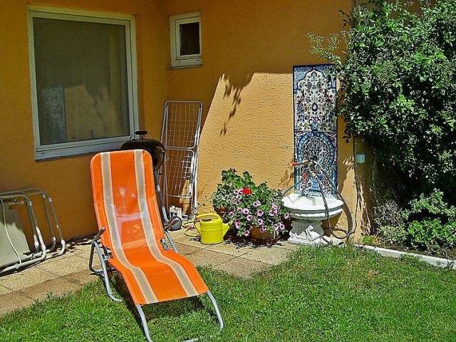 Apartamento de 3 estancias 75 m2, en planta baja. Con mobiliario bonito y agradable: salón-comedor con mesa de comedor y TV satélite (pantalla plana), radio. Salida al jardín. 1 dorm. doble. 1 dorm. con 2 camas y ducha/WC. Cocina abierta (horno, lavavajillas, 4 placas de vitrocerámica, microondas). Bidet, WC separado. Terraza. Muebles de terraza, tumbonas (4). Vista bonita al paisaje. El alojamiento dispone de: sauna (extra), plancha, secador de pelo. Internet (Wifi, gratis). A tener en cuenta: entrada privada, detector de humo, extintores.