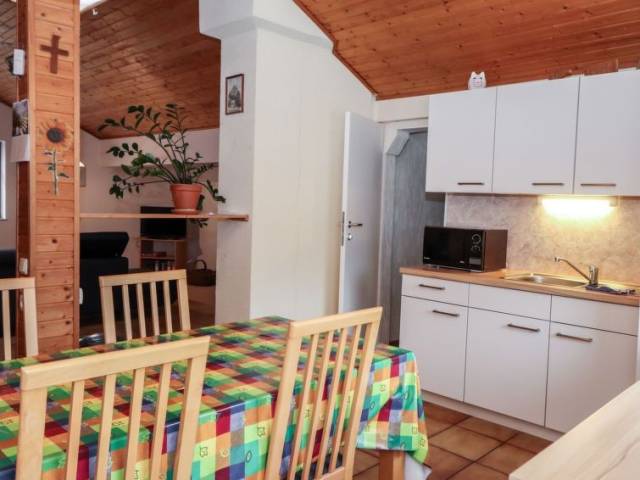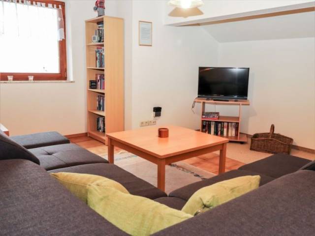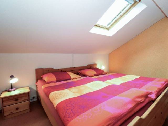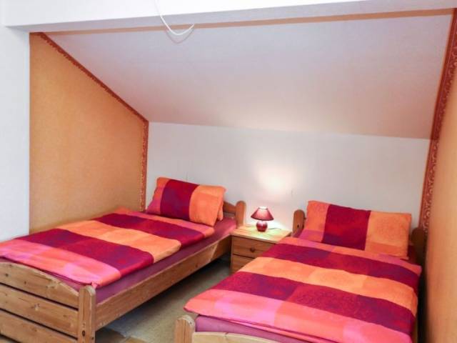 Apartamento de 3 estancias 65 m2, en el ático. Espacioso, abuhardillado, con mobiliario sencillo y funcional: salón-comedor 45 m2, grande con mesa de comedor, rincón cocina y TV satélite. 1 dorm. doble con tragaluz. 1 dorm. con 2 camas. Cocina abierta (4 fogones, horno, microondas). Ducha/WC. Terraza-jardín. Vista muy bonita a las montañas y al paisaje. El alojamiento dispone de: Internet (Wifi, gratis). A tener en cuenta: apartamento para no fumadores. Permitido máximo 1 mascota / perro.
