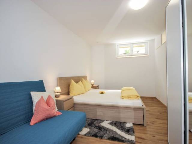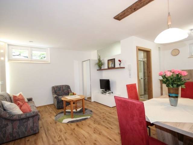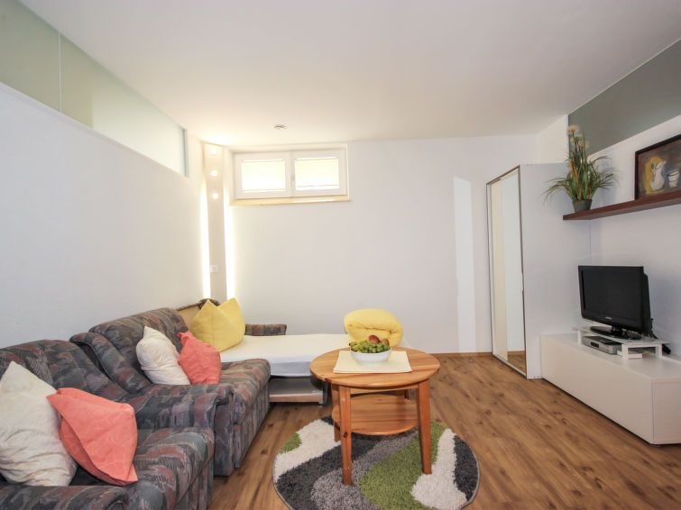 "Matilda", apartamento de 2 estancias 50 m2, en planta inferior. Con mobiliario moderno y agradable: 1 dorm. con 1 cama de matrimonio (140 cm), 1 cama doble. Salón-dormitorio con 1 cama-nido (2 pers.), TV satélite (pantalla plana). Cocina abierta (horno, lavavajillas, 4 placas de vitrocerámica, microondas, cafetera eléctrica, Cápsulas de café (Tchibo)) con mesa de comedor. Ducha/WC. El alojamiento dispone de: Internet (Wifi, gratis). A tener en cuenta: apartamento para no fumadores. Detector de humo.