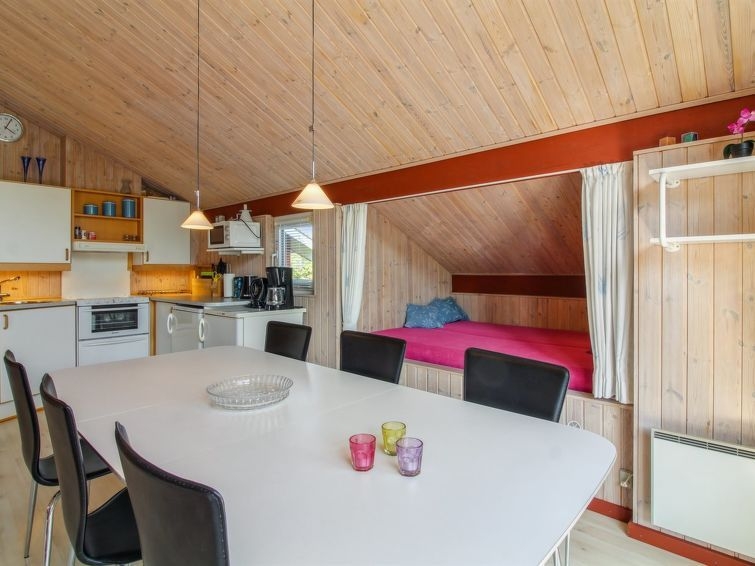 Casa unifamiliar del año 1993. A 1.3 km del mar. Privado: terreno en estado natural 1'723 m2. Barbacoa, parque infantil (columpio). En el inmueble: sauna, lavadora, secadora. Aparcamiento junto a la casa. Tienda de comestibles 700 m. El propietario no acepta grupos de adolescentes/jóvenes.