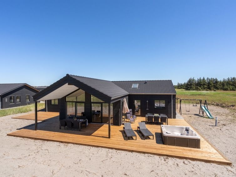 "Ambra" - 950m from the sea in NW Jutland", casa 4 estancias 155 m2. Vivienda adecuada para 12 adultos + 1 niño. Salón con TV y radio. 1 dorm. con 1 cama doble. 1 dorm. con 1 cama doble. 1 dorm. con 1 cama doble. Altillo abierto 1 dorm. con 4 x 4 literas. Cocina (horno, lavavajillas, 4 Placas de inducción, microondas, congelador). 2 ducha/WC. Terraza 21 m2, cubierta. El alojamiento dispone de: trona, cuna (extra). Internet (Wifi). A tener en cuenta: apartamento para no fumadores.