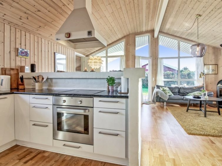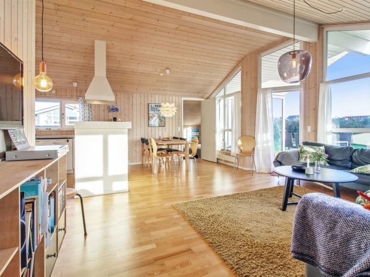 "Freda" - 400m from the sea in NW Jutland", casa 3 estancias 80 m2. Vivienda adecuada para 6 adultos + 1 niño. Salón con TV, radio y DVD. 1 dorm. con 1 cama doble. 1 dorm. con 1 cama doble. 1 dorm. con 2 camas. Cocina (horno, lavavajillas, 4 placas de vitrocerámica, microondas, congelador). Ducha/WC. El alojamiento dispone de: trona, cuna (extra). Internet (Wifi). A tener en cuenta: apartamento para no fumadores. Permitido máximo 1 mascota / perro.