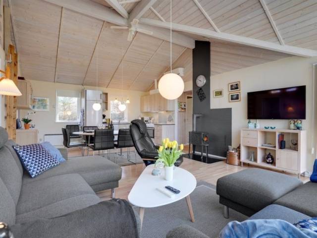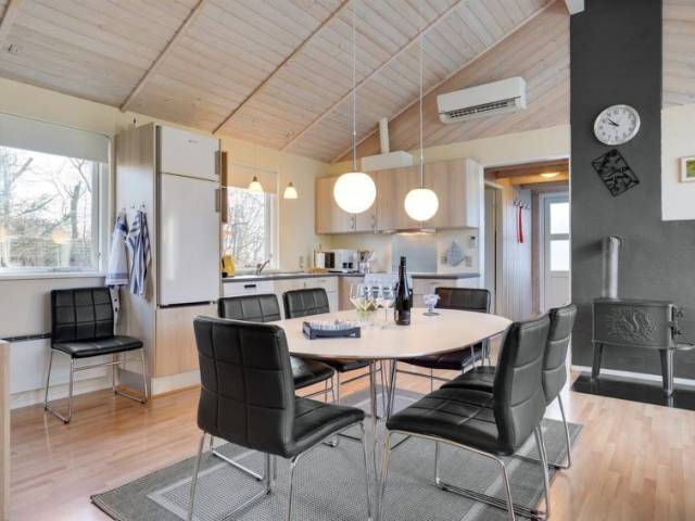 "Razmo" - 300m from the sea in Djursland and Mols", casa 3 estancias 84 m2. Vivienda adecuada para 6 adultos + 1 niño. Salón con TV, radio y equipo de música. 1 dorm. con 1 cama doble. 1 dorm. con 1 cama doble. 1 dorm. con 1 cama doble. Cocina (horno, lavavajillas, 4 placas de vitrocerámica, microondas, congelador). Ducha/WC. Terraza 28 m2, cubierta. El alojamiento dispone de: trona, cuna (extra). A tener en cuenta: apartamento para no fumadores.
