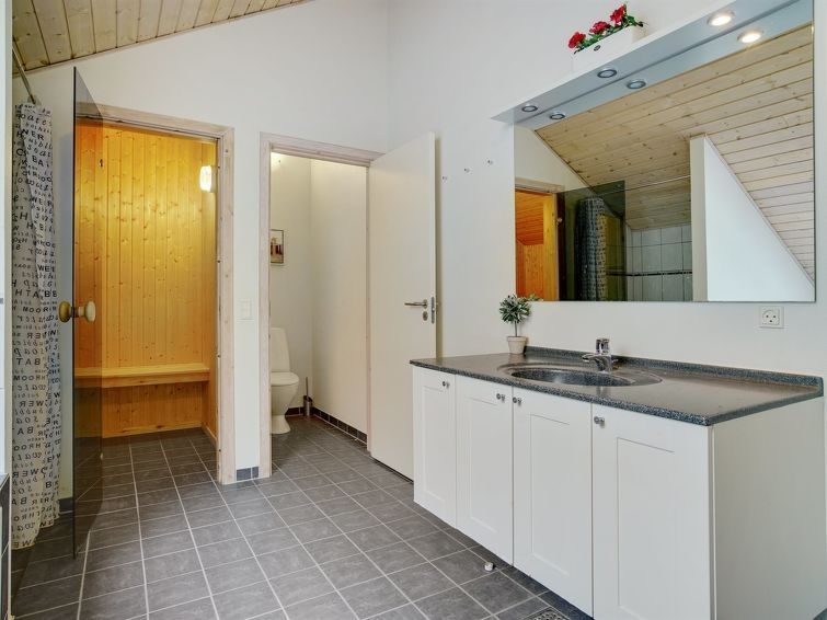 Casa unifamiliar del año 2007. A 900 m del mar. Comunitario: jardín. Privado: terreno 1'680 m2, jardín, cuidado (vallado). Terraza (192 m2), barbacoa, parque infantil (columpio). En el inmueble: sauna, lavadora, secadora. Aparcamiento junto a la casa. Tienda de comestibles 450 m. El propietario no acepta grupos de adolescentes/jóvenes. "Annamaria" - 900m from the sea in Lolland, Falster and Mon", casa 5 estancias 160 m2. Vivienda adecuada para 14 adultos + 1 niño. Salón con TV, radio, CD, equipo de música y DVD. 1 dorm. con 1 cama doble. 1 dorm. con 1 cama doble. 1 dorm. con 1 cama doble. 1 dorm. con 2 camas. Altillo abierto 1 dorm. con 2 camas. Cocina (horno, lavavajillas, 4 placas de vitrocerámica, microondas, congelador). 2 ducha/WC. Terraza 30 m2, cubierta. El alojamiento dispone de: trona, cuna (extra). Internet (Wifi). A tener en cuenta: apartamento para no fumadores.