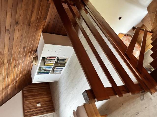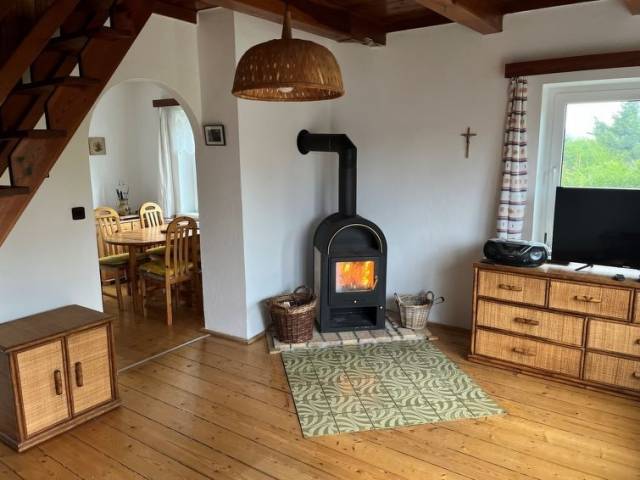 3 estancias casa de campo 82 m2 en 2 plantas. Salón con 1 sofá-cama doble, chiminea nórdica y TV (pantalla plana), radio y CD. Salida al balcón. Cocina (horno, lavavajillas, 4 placas de vitrocerámica, hervidor de agua eléctrico, microondas, congelador) con mesa de comedor. Ducha/WC. Planta superior: 1 dorm. con 1 cama doble. Salida al balcón, orientación sur. 1 dorm. con 3 camas. 2 balcones. Vista al paisaje. El alojamiento dispone de: lavadora. Internet (Wifi, gratis). A tener en cuenta: casa para no fumadores.