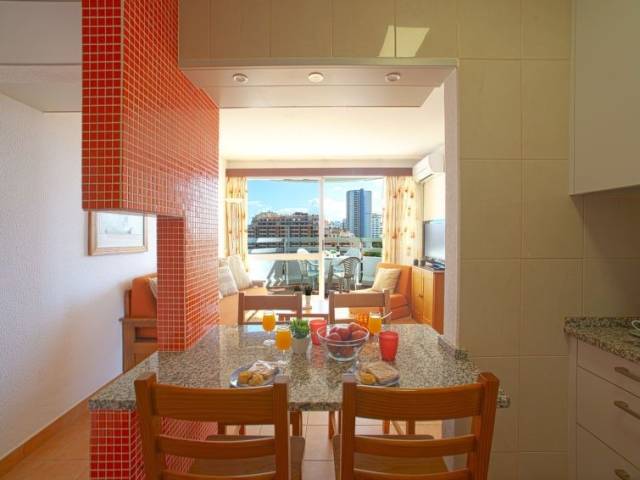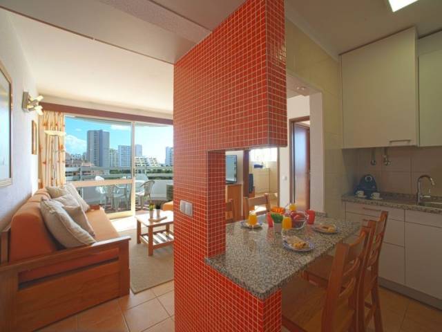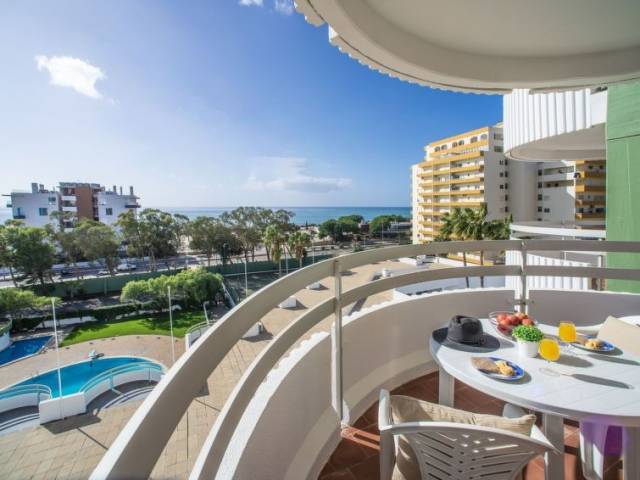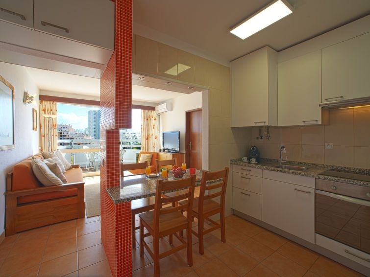 "Três castelos praia da rocha", apartamento de 2 estancias 59 m2. Espacioso y luminoso, con mobiliario muy funcional y confortable: 1 dorm. con 1 cama de matrimonio (160 cm, 200 cm de longitud), aire acondicionado y bomba de calor, caliente. Salida al balcón. Salón con 1 sofá-cama (180 cm, 190 cm de longitud), TV cable, aire acondicionado y bomba de calor, caliente. Pequeña cocina-comedor (horno, tostadora, hervidor de agua eléctrico, microondas, congelador, cafetera eléctrica, Cápsulas de café (Nespresso Not Incl.)) con mesa de comedor, TV cable y pantalla plana. Salida al balcón. Ducha/WC. Muebles de terraza. Vista muy bonita al mar. El alojamiento dispone de: plancha, trona, cuna hasta 2 años, secador de pelo. Internet (Wifi, gratis). Garaje n. 608. Adecuado para familias. 150553/AL