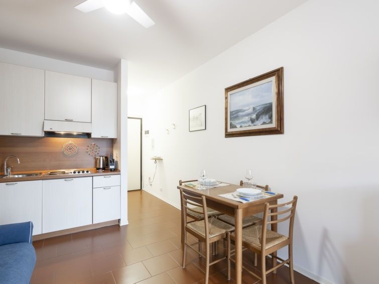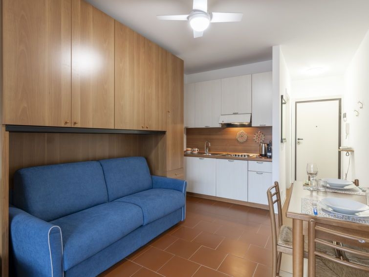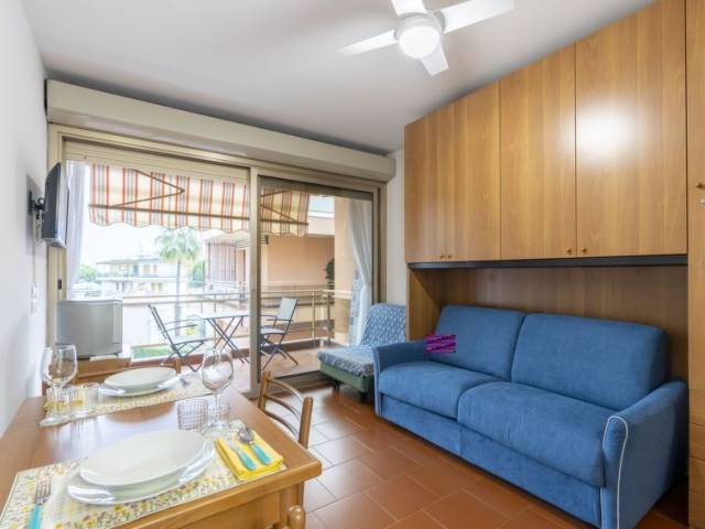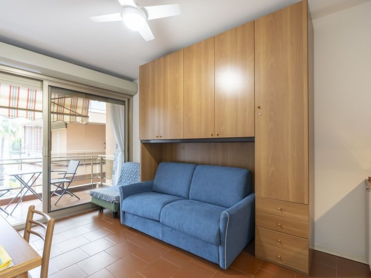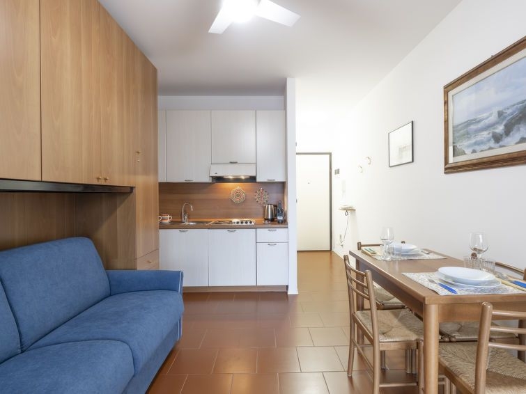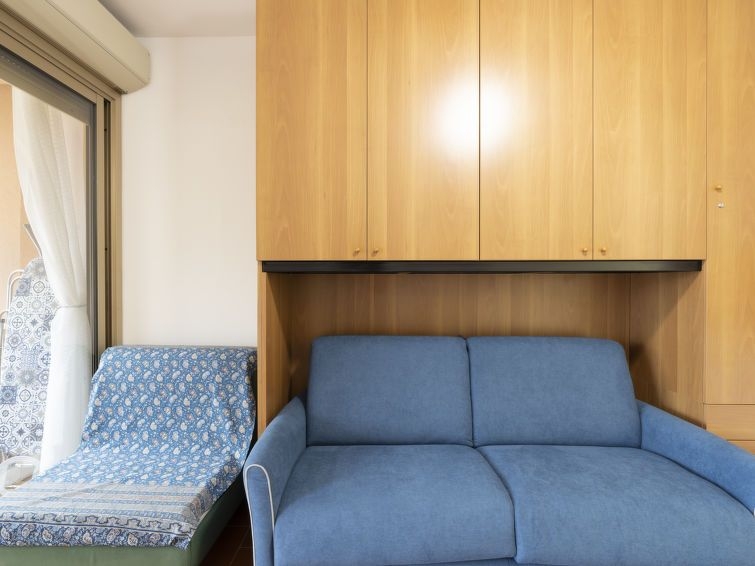 "AcquadiMare" estudio 30 m2 en el 3° piso. Luminoso, con mobiliario confortable y agradable: salón-dormitorio con 1 sofá-cama (90 cm, 200 cm de longitud), 1 sofá-cama doble (140 cm, 200 cm de longitud). Salida al balcón. Rincón-cocina (4 fuegos, tostadora, hervidor de agua eléctrico, microondas, cafetera eléctrica). Salida al balcón. Ducha/bidet/WC. Aire acondicionado, aire caliente. Calefacción disponible desde el 01.11. al 08.04. Balcón 6 m2. Muebles de balcón. Vista bonita a la piscina. El alojamiento dispone de: lavadora, plancha, secador de pelo. Internet (Wifi, gratis). Ancho 295 cm. 008055-LT-2422