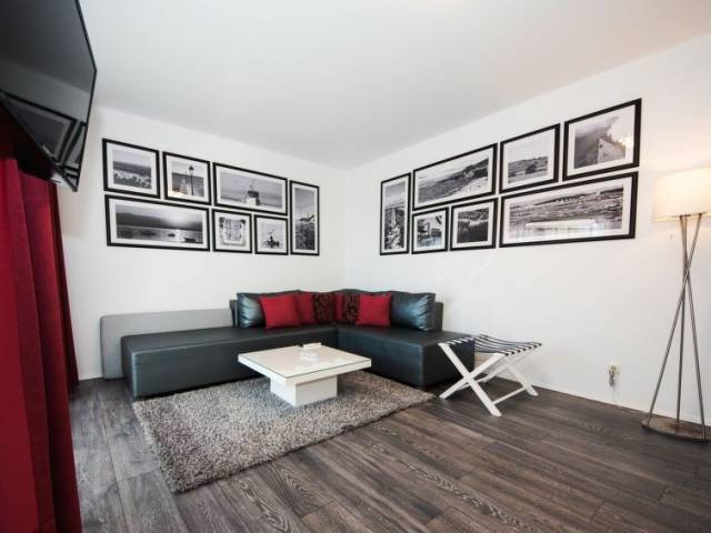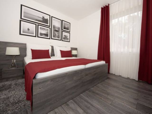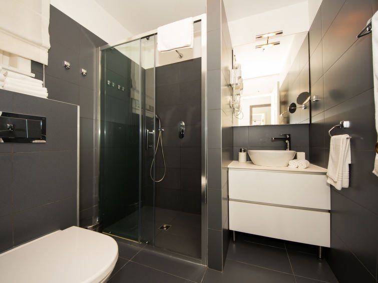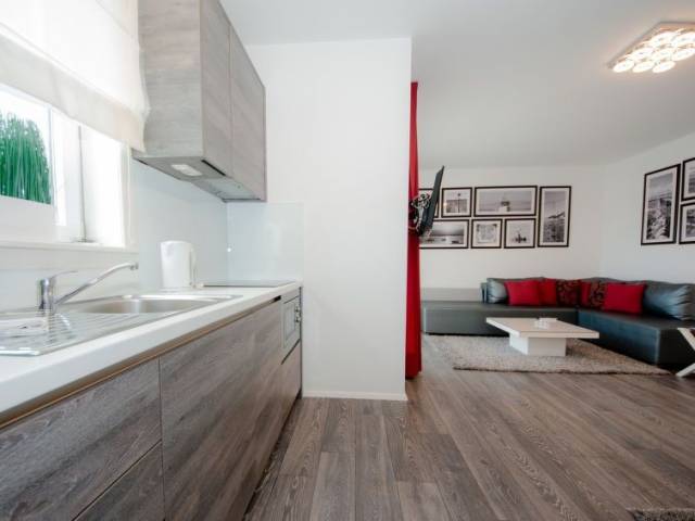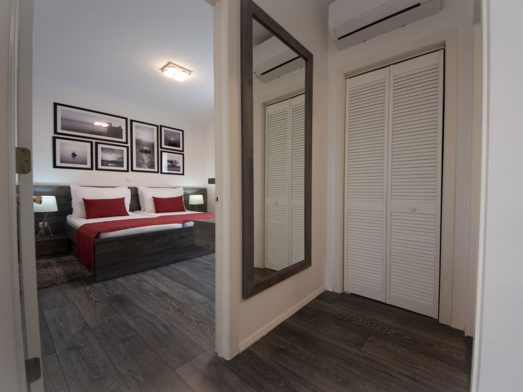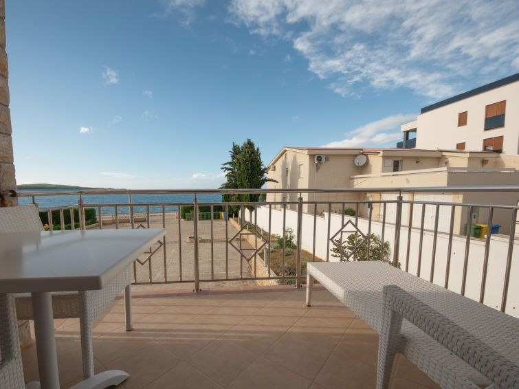Casa de apartamentos "Sunset", moderno. A 2 km del centro de Vir, lugar soleado, a 10 m del mar, a 10 m de la playa, cruzando la calle. Comunitario: terreno 1'000 m2 (vallado). Muebles de jardín, parque infantil (tobogán, columpio). En el inmueble: acceso a internet. Aparcamiento junto a la casa en el mismo terreno. Tienda, restaurante 200 m, playa de gravilla 10 m. Apartamento de 2 estancias 50 m2, en planta baja elevada, orientación sur. Con mobiliario bonito y moderno: salón-comedor con 1 sofá-cama doble (140 cm, 200 cm de longitud), TV satélite y aire acondicionado. Salida al balcón. 1 dorm. con 1 cama doble (2 x 90 cm, 200 cm de longitud), TV. Cocina abierta (lavavajillas, 4 Placas de inducción, hervidor de agua eléctrico, microondas, congelador, cafetera eléctrica). Ducha/WC. Aire acondicionado, aire caliente. Balcón 6 m2. Muebles de balcón. Vista al mar. El alojamiento dispone de: caja fuerte, secador de pelo. Internet (Wifi, gratis). Plaza de aparcamiento (1 coche). 1 mascota pequeña / perro.