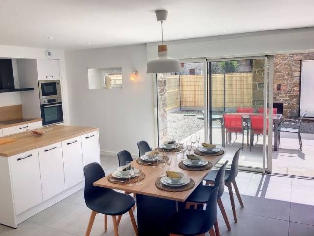 Casa "Le cottage", de 2 plantas, reformada en 2023, rodeada de campos. En un aldea, en las afueras de la localidad, a 2.5 km del centro de La Fresnais, a 5.5 km del mar, a 5.5 km de la playa. Privado: jardín pequeño (vallado). Terraza (12 m2), muebles de jardín. En el inmueble: sala para guardar bicicleta. Aparcamiento junto a la casa en el mismo terreno. Tienda 2.3 km, tienda de comestibles 2.5 km, supermercado 2.5 km, restaurante 2.4 km, panadería 2.2 km, parada de autobús "les roblins" 400 m, estación de tren "La Fresnais" 2.5 km, playa de arena "Saint Benoit des Ondes" 5.4 km, piscina termal "Thermes marins de St Malo" 18.5 km. Tenis 1.8 km, centro ecuestre 18 km. Atracciones en los alrededores: Saint Malo Intramuros 19.2 km, Le grand aquarium de St malo 14 km, Dinan 27.6 km, Dinard 22 km, Dol de Bretagne 11.5 km, Le Mont St Michel 37 km. A tener en cuenta: coche recomendable. Casa rural 4 estancias 100 m2 en 2 plantas. Completamente reformada en 2023, con mobiliario bonito y de buen gusto: salón-comedor grande con TV (pantalla plana). Salida a la terraza. Cocina abierta (horno, lavavajillas, 3 Placas de inducción, tostadora, hervidor de agua eléctrico, microondas, congelador, cafetera eléctrica). WC separado. Planta superior: 3 dorm., grandes, cada habitación con 1 cama de matrimonio (1 x 140 cm, 190 cm de longitud), lavabo y ducha. WC separado. Terraza 12 m2, terraza-jardín 50 m2. Muebles de terraza, barbacoa. El alojamiento dispone de: lavadora, secadora, plancha. Internet (Wifi, gratis). Garaje en el mismo terreno. A tener en cuenta: detector de humo. Oferta de un particular según el art. 155, IV del CGI.