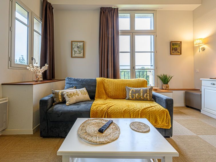 "Château De Kergonano,", apartamento de 3 estancias 47 m2 en el 2° piso. Con mobiliario funcional y bonito: salón-comedor con 1 sofá-cama doble y TV (pantalla plana). Salida al balcón. 1 dorm. con 1 cama de matrimonio (1 x 140 cm, 190 cm de longitud). 1 dorm. con 2 camas (90 cm, 190 cm de longitud). Rincón-cocina (lavavajillas, 4 placas de vitrocerámica, tostadora, hervidor de agua eléctrico, microondas, cafetera eléctrica). Ducha, WC separado. Calefacción eléctrica. Vista a la piscina y al jardín. El alojamiento dispone de: Internet (Wifi, gratis). Plaza de aparcamiento. A tener en cuenta: apartamento para no fumadores. Permitido máximo 1 mascota pequeña / perro. Detector de humo. Oferta de un particular según el art. 155, IV del CGI.