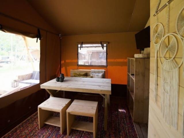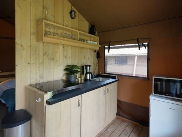 "Glampingtent Desert 4", estudio casa de campo 50 m2. Con mobiliario sencillo: salón-dormitorio con 1 x 2 literas, 1 cama doble, mesa de comedor y TV. Salida a la terraza. Pequeña cocina (4 Placas de inducción, hervidor de agua eléctrico, cafetera eléctrica, microondas/grill). Ducha/WC. Ningún tipo de calefacción. Terraza. Muebles de terraza. El alojamiento dispone de: Internet (Wifi, gratis). A tener en cuenta: apartamento para no fumadores.