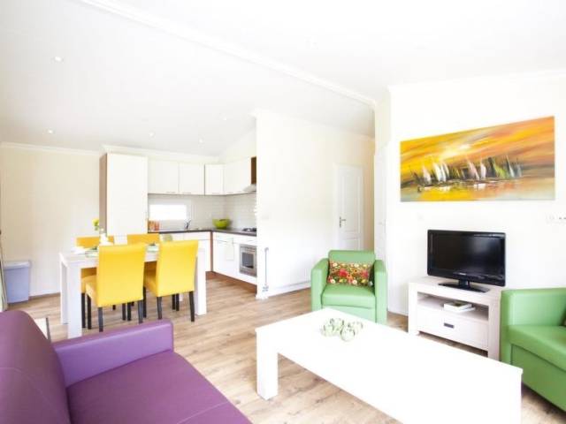 "Veranda 4", bungalow 3 habitaciones 50 m2. Con mobiliario confortable: salón-comedor con mesa de comedor y pantalla plana. Salida a la terraza. 1 dorm. con 2 camas. 1 dorm. con 1 cama doble. Cocina abierta (4 fogones, lavavajillas, hervidor de agua eléctrico, cafetera eléctrica, microondas/grill). Ducha/WC. Calefacción. Terraza. Muebles de terraza. El alojamiento dispone de: Internet (Wifi, gratis). Plaza de aparcamiento (1 coche) junto a la casa. A tener en cuenta: apartamento para no fumadores.
