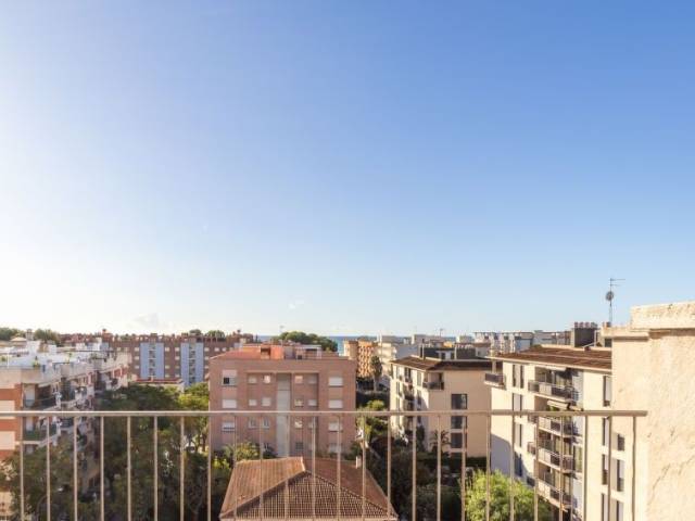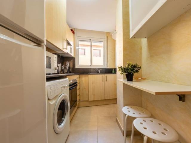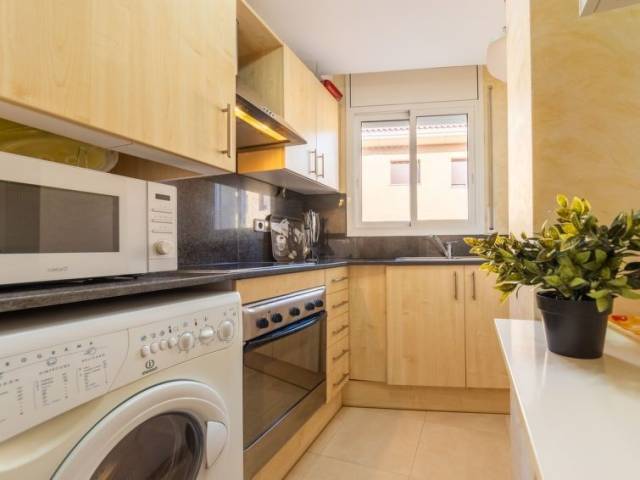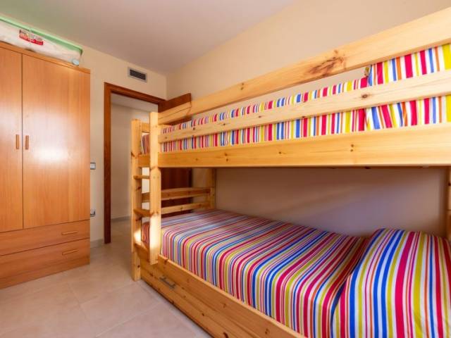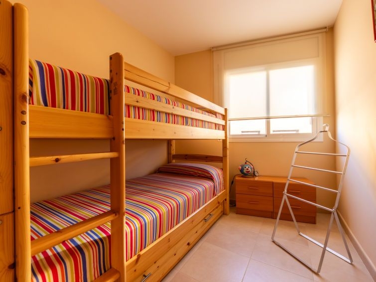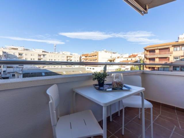 "Estacio", apartamento de 3 estancias 72 m2 en el 4° piso. Vivienda adecuada para 2 adultos + 2 niños. Con mobiliario funcional y confortable: salón-comedor con TV digital y aire acondicionado. Salida al balcón. 1 dorm. con 1 cama de matrimonio (135 cm, 200 cm de longitud), aire acondicionado. 1 dorm. con 1 x 1 literas (90 cm, 190 cm de longitud), aire acondicionado. Cocina (horno, 4 placas de vitrocerámica, tostadora, hervidor de agua eléctrico, microondas, cafetera eléctrica). Baño/WC. Aire acondicionado, aire caliente. Balcón. Muebles de terraza. El alojamiento dispone de: lavadora, plancha, secador de pelo. Internet (Wifi, gratis). A tener en cuenta: apartamento para no fumadores. TV solamente ES. R000000001