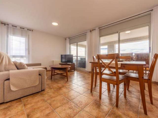 "Marinada", apartamento de 3 estancias 64 m2 en el 1° piso. Vivienda adecuada para 2 adultos + 2 niños. Con mobiliario confortable y agradable: salón-comedor con TV digital. Salida a la terraza. 1 dorm. con 1 cama de matrimonio (1 x 150 cm, 190 cm de longitud), ducha/WC y ventilador. 1 dorm. con 1 cama-nido (2 pers. 2 x 90 cm, 190 cm de longitud), ventilador. Cocina (horno, lavavajillas, 4 placas de vitrocerámica, tostadora, hervidor de agua eléctrico, microondas, cafetera eléctrica, Cápsulas de café (Nespresso) extra). Ducha/WC. Calefacción de gas. Terraza grande. Muebles de terraza, rincón para sentarse. Vista lejana parcial al mar. El alojamiento dispone de: lavadora, plancha, secador de pelo. Internet (Wifi, gratis). A tener en cuenta: apartamento para no fumadores. TV solamente ES. HUTT-075001