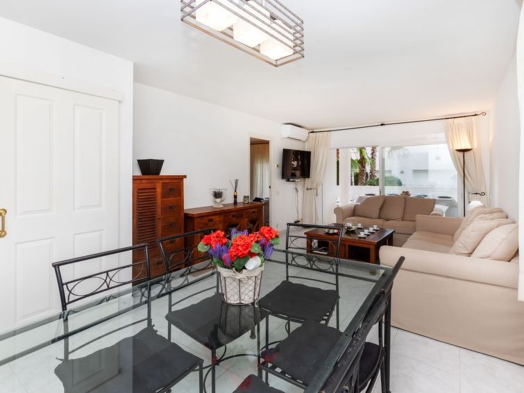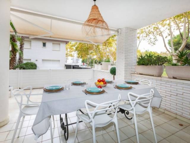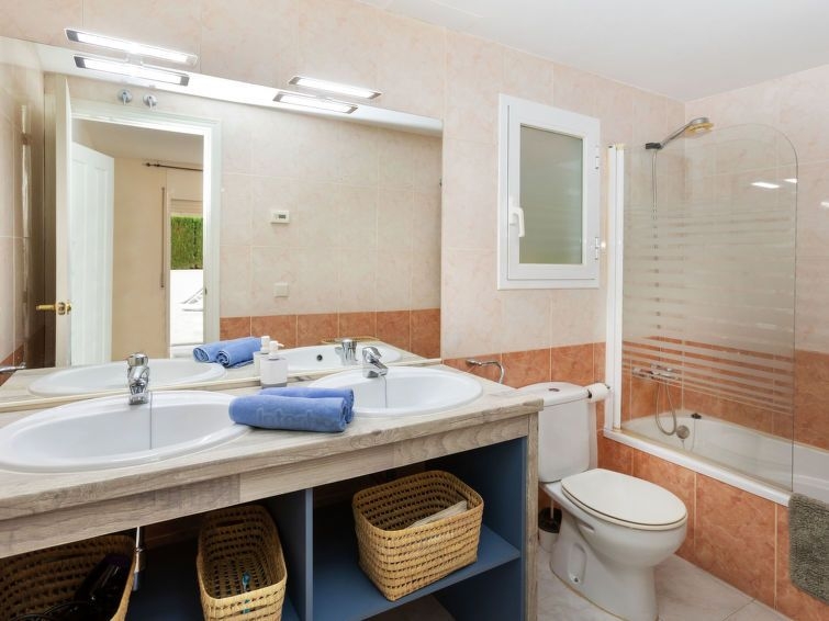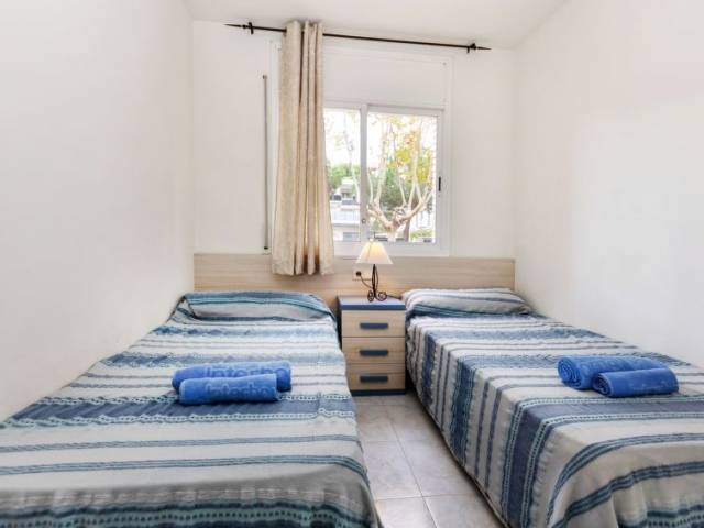 "Nautic Par", apartamento de 4 estancias 75 m2, en la planta baja. Con mobiliario funcional: salón-comedor con TV digital y aire acondicionado. Salida a la terraza, a la piscina. 1 dorm. con 1 cama de matrimonio (150 cm, 190 cm de longitud), baño/bidet/WC y TV. 1 dorm. con 1 x 2 literas (90 cm, 190 cm de longitud). 1 dorm. con 2 camas (90 cm, 190 cm de longitud). Cocina (lavavajillas, 4 placas de vitrocerámica, tostadora, hervidor de agua eléctrico, microondas, congelador, cafetera eléctrica). Salida a la terraza. Ducha/WC. Calefacción por suelo. Terraza. Muebles de terraza, tumbonas, porche. Vista a la piscina. El alojamiento dispone de: lavadora, plancha, trona, cuna, secador de pelo. Internet (Wifi, gratis). Plaza de aparcamiento. A tener en cuenta: adecuado para familias. Apartamento para no fumadores. TV solamente ES. HUTG-063241