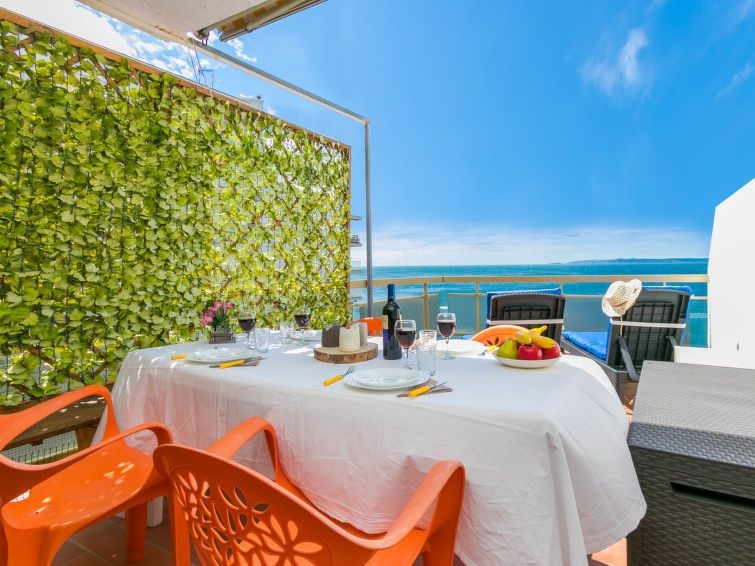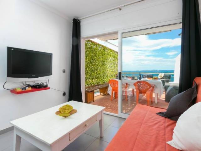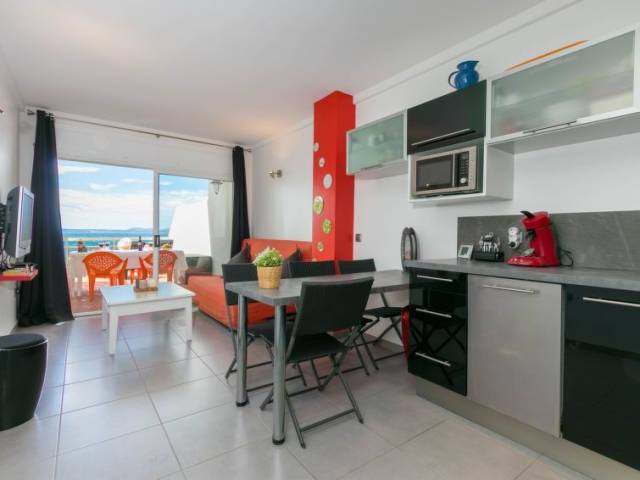 CANYELLES PETITES a 2 km de ROSES: Casa de apartamentos "MEDA CHICA", agradable, confortable. En el barrio de Canyelles Petites, a 1.5 km del centro de Roses, lugar tranquilo, soleado, zona con poco tráfico, a 30 m del mar, acceso directo a la playa. Tienda, supermercado 600 m, restaurante, bar 400 m, parada de autobús "Roses" 3 km, estación de tren "Figueres" 20 km, playa de arena "Canyelles Petites", cala para bañarse 200 m. Puerto deportivo, puerto para yates 900 m, campo de golf (18 hoyos) 15 km, escuela de surf 1.5 km, escuela de vela 1.5 km, minigolf 2 km. Atracciones en los alrededores: Parque Acuático Roses 6 km, Monasterio Sant Pere de Rodes 23 km, Castillo de Peralada 24 km, Museo Dalí Figueres 24 km, Centro paracaidismo Skydive 11 km, Cadaqués 15 km. A tener en cuenta: coche recomendable, sin ascensor. Apartamento de 2 estancias 33 m2, orientación suroeste. Luminoso, parcialmente reformado, con mobiliario funcional y agradable: salón-comedor con 1 sofá-cama, mesa de comedor, TV satélite, TV digital y ventilador. Salida a la terraza, orientación sur y orientación oeste. 1 dorm., abierto con 1 cama de matrimonio. Cocina abierta (horno, lavavajillas, 3 placas de vitrocerámica, microondas, congelador, cafetera eléctrica). Ducha/WC. Ningún tipo de calefacción. Terraza grande. Muebles de terraza. Vista panorámica espléndida al mar. A tener en cuenta: TV solamente FR, ES, DE. Sin ascensor. HUTG038509