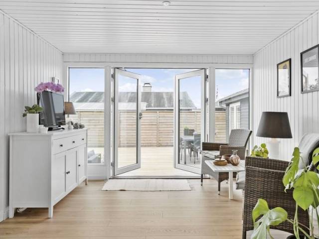 "Elisabeta" - 60m from the sea in SE Jutland", casa estudio 62 m2. Vivienda adecuada para 4 adultos + 1 niño. Salón con 1 sofá-cama doble y TV. 1 dorm. con 1 cama doble. Cocina (horno, lavavajillas, 4 placas de vitrocerámica, microondas, congelador). Ducha/WC. El alojamiento dispone de: trona, cuna (extra). Internet (Wifi). A tener en cuenta: apartamento para no fumadores. Permitido máximo 1 mascota / perro.