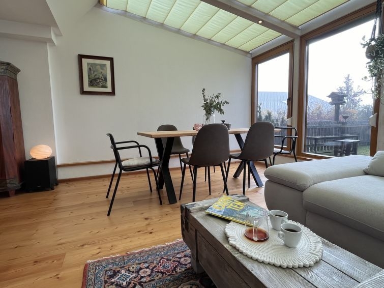 "Wintersonne", apartamento de 3 estancias 100 m2, en la planta baja. Luminoso, con mobiliario moderno y agradable: salón-dormitorio con 1 sofá-cama doble, mesa de comedor, TV, TV digital y canales internacionales (pantalla plana). Salida al jardín. 1 dorm. doble. Salida al jardín. 1 dorm. doble. Cocina abierta (horno, lavavajillas, 4 placas de vitrocerámica, tostadora, hervidor de agua eléctrico, microondas, cafetera eléctrica). Bidet, WC separado, baño/ducha/WC. Suelo de parquet. Terraza grande 60 m2. Muebles de terraza. Vista bonita a las montañas y a la pista de esquí. El alojamiento dispone de: Internet (Wifi, gratis). Garaje. A tener en cuenta: apartamento para no fumadores. Detector de humo, extintores.