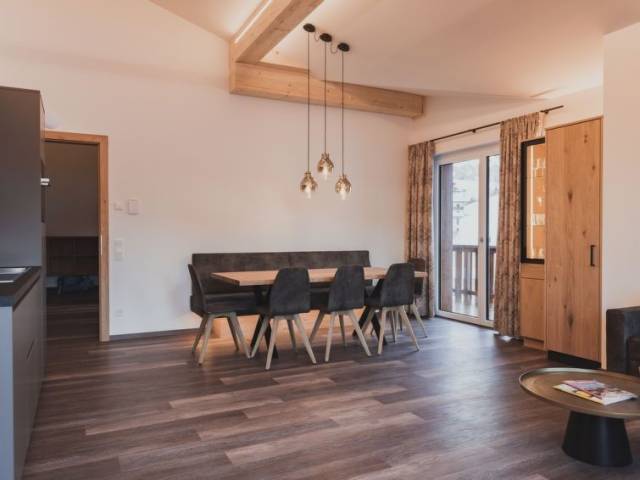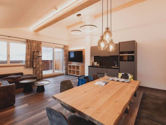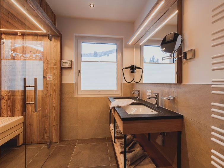 Dienten am Hochkönig: Casa de apartamentos "Portis", moderno. A 100 m del centro de Dienten, a 50 m de las pistas de esquì. En el inmueble: sauna, baño turco, habitación relax, zona de spa de uso comunitario a 150 m, calefacción central. Garaje comunitario. Supermercado 200 m, restaurante 100 m, lago 50 km. Remontes 50 m. Zonas de esquí populares fácilmente accesibles: Dienten. Zona de senderismo Hochkönig. "4 Raum Typ Bergsuite", apartamento de 4 estancias 102 m2. Espacioso y luminoso, con mobiliario de buen gusto: salón-dormitorio con 1 sofá-cama doble, mesa de comedor y TV satélite (pantalla plana). 3 dorm. dobles. Cocina abierta (lavavajillas, 4 placas de vitrocerámica, hervidor de agua eléctrico, microondas, cafetera eléctrica, Cápsulas de café (Nespresso) extra). 2 ducha/WC, WC separado. Balcón. Muebles de balcón. Vista bonita a las montañas, al paisaje y a la localidad. El alojamiento dispone de: sauna, secador de pelo. Internet (Wifi, gratis). Garaje (2 Coches). A tener en cuenta: apartamento para no fumadores.