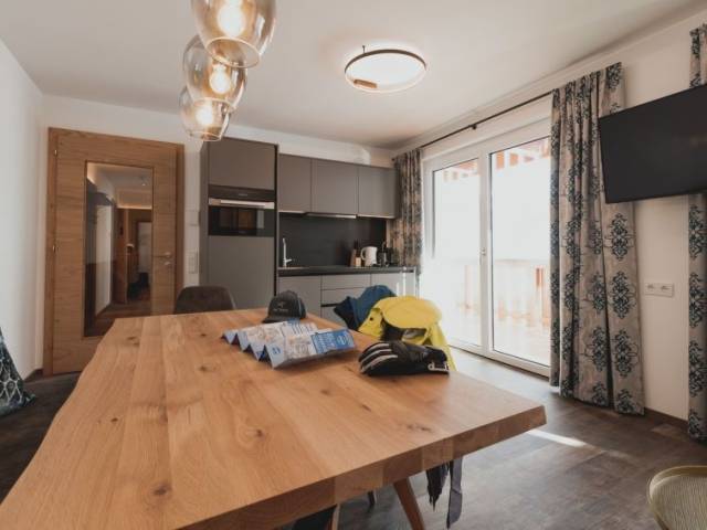 "3 Raum Typ Hochsailer", apartamento de 3 estancias 70 m2. Espacioso y luminoso, con mobiliario de buen gusto: salón-dormitorio con 1 sofá-cama, mesa de comedor y TV satélite (pantalla plana). 2 dorm. dobles. Cocina abierta (lavavajillas, 4 placas de vitrocerámica, hervidor de agua eléctrico, microondas, cafetera eléctrica, Cápsulas de café (Nespresso) extra). 2 ducha/WC. Balcón. Muebles de balcón. Vista bonita a las montañas, al paisaje y a la localidad. El alojamiento dispone de: sauna, secador de pelo. Internet (Wifi, gratis). A tener en cuenta: apartamento para no fumadores.