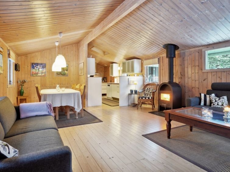Casa unifamiliar del año 1973. A 600 m del mar. Privado: terreno en estado natural 1'679 m2. Barbacoa, parque infantil, aparcamiento junto a la casa. Tienda de comestibles 2.5 km. Campo de golf 7 km. El propietario no acepta grupos de adolescentes/jóvenes.
