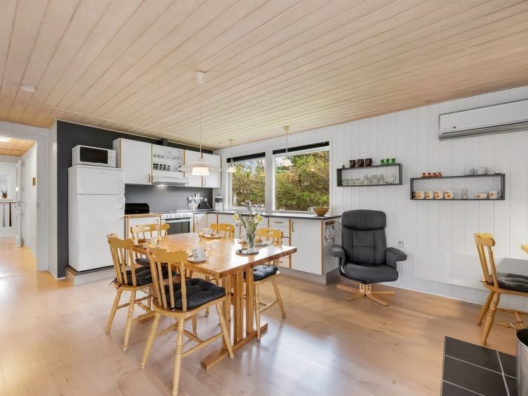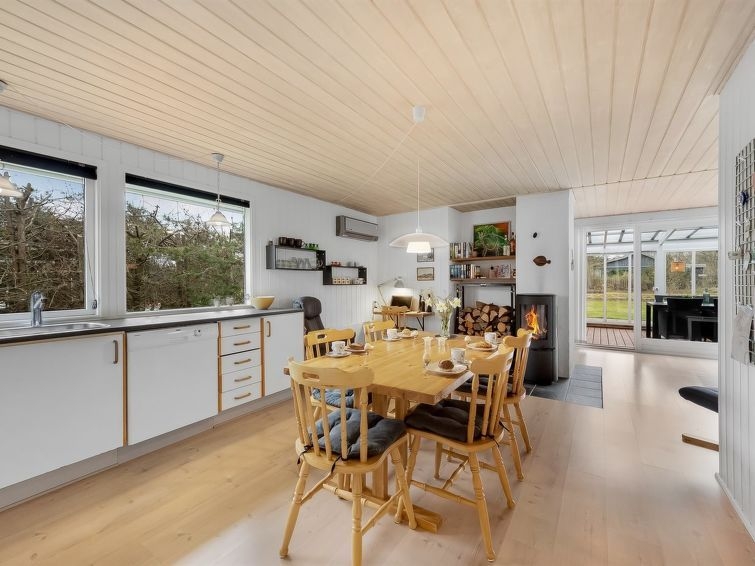 "Laris" - 250m to the inlet in Western Jutland", casa 3 estancias 80 m2. Vivienda adecuada para 6 adultos. Salón con TV y radio. 1 dorm. con 1 cama doble. 1 dorm. con 1 cama doble. 1 dorm. con 1 cama doble. Cocina (horno, lavavajillas, 4 placas de vitrocerámica, microondas, congelador). Ducha/WC. Invernadero. El alojamiento dispone de: Internet (Wifi). A tener en cuenta: apartamento para no fumadores. Permitido máximo 1 mascota / perro.
