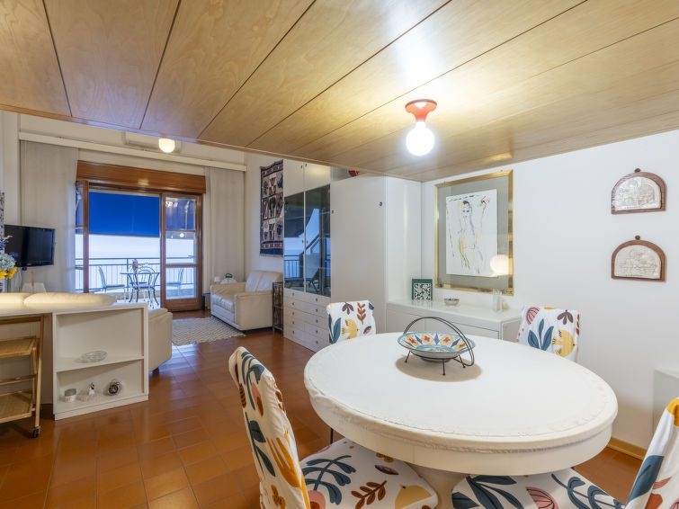 "Nellina", apartamento de 3 estancias 85 m2 en el 2° piso. Espacioso y luminoso, con mobiliario de buen gusto: salón-comedor con 2 sofás-cama (120 cm, 200 cm de longitud), 1 cama abatible (80 cm, 190 cm de longitud). Salida al balcón. 1 dorm. con 2 camas (80 cm, 200 cm de longitud), lavabo y bidet. Rincón-cocina (horno, 4 fuegos, tostadora, microondas, cafetera eléctrica). Ducha/bidet/WC. Aire acondicionado, aire caliente. Calefacción disponible desde el 01.11. al 08.04. Planta superior: 1 dorm. doble, abierto. Balcón 12 m2. Muebles de balcón. Vista panorámica muy bonita al mar. El alojamiento dispone de: lavadora, secador de pelo. Internet (Wifi, gratis). 008039-LT-243