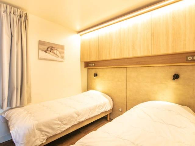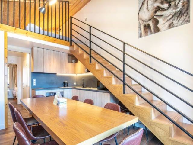 Apartamento de 4 estancias 65 m2. Con mobiliario funcional: salón-dormitorio con puerta corredera con 2 sofás-cama dobles y TV (pantalla plana). 2 dorm., cada habitación con 2 camas. Altillo con 2 camas. Rincón-cocina (horno, lavavajillas, 2 placas de vitrocerámica, tostadora, hervidor de agua eléctrico, microondas, congelador, cafetera eléctrica, Cápsulas de café (Nespresso) extra). Baño, ducha, WC separado. Calefacción. Terraza. Tumbonas. Vista al valle. El alojamiento dispone de: secador de pelo. Internet (Wifi, gratis). Plaza de aparcamiento. A tener en cuenta: permitido máximo 1 mascota / perro. Detector de humo.