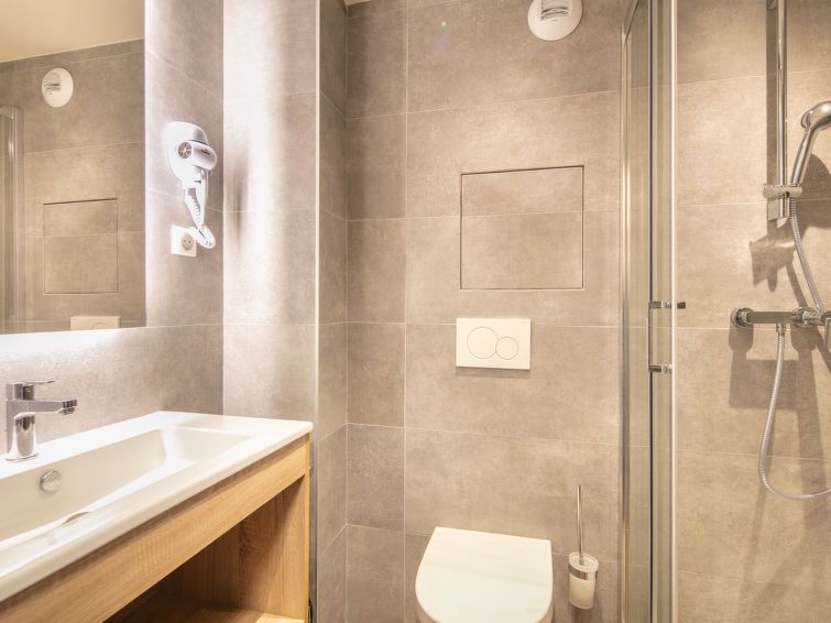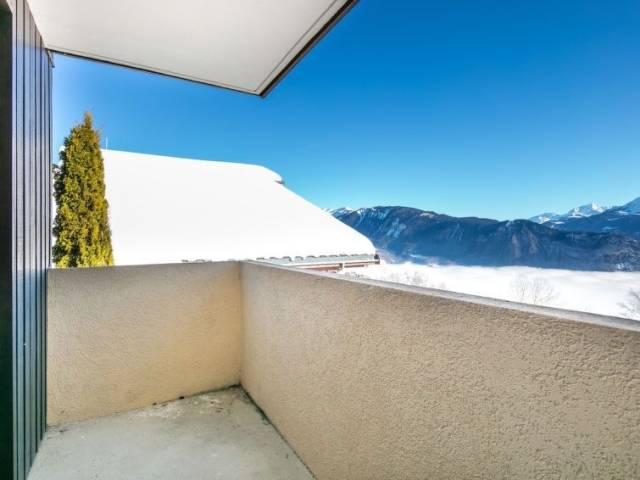 Apartamento de 2 estancias 27 m2. Con mobiliario funcional: salón-dormitorio con 1 sofá-cama doble y TV (pantalla plana). 1 dorm. con 1 cama de matrimonio. Rincón-cocina (horno, lavavajillas, 2 placas de vitrocerámica, tostadora, hervidor de agua eléctrico, microondas, congelador, cafetera eléctrica, Cápsulas de café (Nespresso) extra). Ducha, WC separado. Calefacción. Terraza. Tumbonas. Vista al valle. El alojamiento dispone de: secador de pelo. Internet (Wifi, gratis). Plaza de aparcamiento. A tener en cuenta: permitido máximo 1 mascota / perro. Detector de humo.