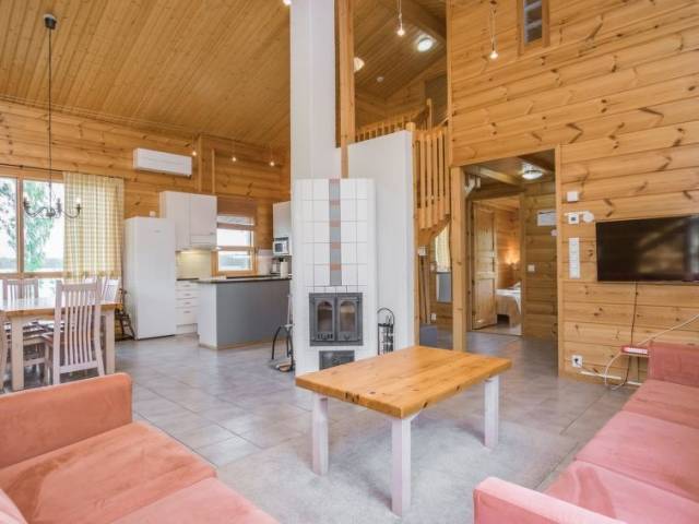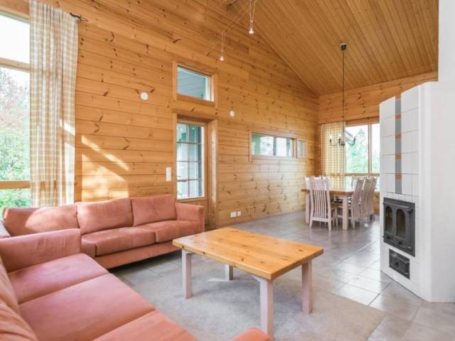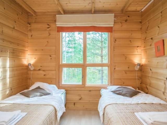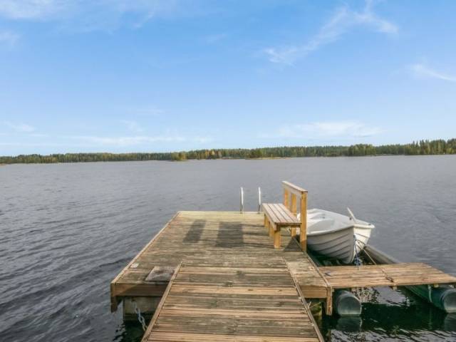 Permitido máximo 2 mascotas / perros. 45 km al noroeste de Savonlinna, el lago Saimaa / Joutenvesi a 50 m, fondo de arena / piedra suavemente profundizando, muelle y bote propio. Chalé de troncos de 2003, salón-cocina, 2 dormitorios con 2 camas en cada uno, WC. En la planta superior 2 dormitorios con 2 camas en cada uno, WC. Zona independiente de sauna con vestidor, baño (2 duchas), sauna (estufa eléctrica), WC. Entrada a la sauna por el porche. Cochera, WI-Fi gratis y canales por satélite. ¡Nota! La hora de check-in para esta cabaña es a las 16.00 como más temprano y check out a las 12.00 (del mediodía, esto se refiere también a las reservas de fines de semana) a más tardar. La villa vacacional está situada en un ambiente tranquilo a orillas del lago Saimaa a poca distancia andando de los servicios en el pueblo Oravi. Ubicación muy adecuada para la pesca. Horno de ahumado para el pescado, pista de tenis, sendero de esquí en invierno, servicio de catering. Motor fueraborda (2,3 hp) y bote extra en alquiler.