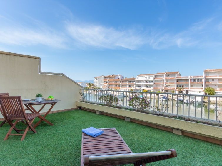 Casa de apartamentos "Port Emporda", sencillo de 3 plantas. En el barrio de Port Empordá, a 1 km del centro de Empuriabrava, lugar tranquilo, soleado, a 1.4 km del mar, a 20 m del canal. Tienda, tienda de comestibles 500 m, supermercado 1 km, centro comercial 1 km, restaurante, bar, café 25 m, internet café 200 m, alquiler de bicicletas 1 km, bar al aire libre 25 m, playa de arena "Empuriabrava" 1.4 km. Puerto deportivo 1.5 km, campo de golf (12 hoyos) 15 km, escuela de surf 1.4 km, escuela de vela 1.4 km, tenis 1 km, minigolf 500 m. Atracciones en los alrededores: Túnel del viento Empuriabrava 2 km, Parque Aquático Roses 10 km, Casino y festival de Perelada 12 km, Museo Dalí Figueres 15 km, Ruines de Empuries 21 km, Cadaqués y Cap de Creus 18 km. Grupos de jóvenes sólo bajo petición. Apartamento de 3 habitaciones 75 m2 en el 1° piso, orientación suroeste. Espacioso y luminoso, completamente reformado en 2020, con mobiliario moderno y agradable: salón-comedor con 1 sofá-cama doble (140 cm, 190 cm de longitud), mesa de comedor, TV digital, aire acondicionado y bomba de calor, caliente. Salida a la terraza, orientación sur y orientación oeste. 1 dorm. con 1 cama de matrimonio (160 cm, 190 cm de longitud). Salida a la terraza, orientación sur y orientación este. 1 dorm. con 2 camas (80 cm, 190 cm de longitud). Salida a la terraza. Grande cocina abierta (horno, lavavajillas, 3 Placas de inducción, tostadora, hervidor de agua eléctrico, microondas, congelador, cafetera eléctrica). Ducha/WC. Terraza grande 17 m2, orientación sur y orientación oeste terraza grande 22 m2, orientación norte y orientación este. Muebles de terraza, barbacoa eléctica. Vista bonita a la localidad y al canal. El alojamiento dispone de: lavadora, plancha, cuna, secador de pelo. Internet (Wifi, gratis). Garaje n. 2 a 300 m, ancho 240 cm, largo 540 cm. A tener en cuenta: apartamento para no fumadores. TV solamente ES. Sin ascensor. HUTG057157