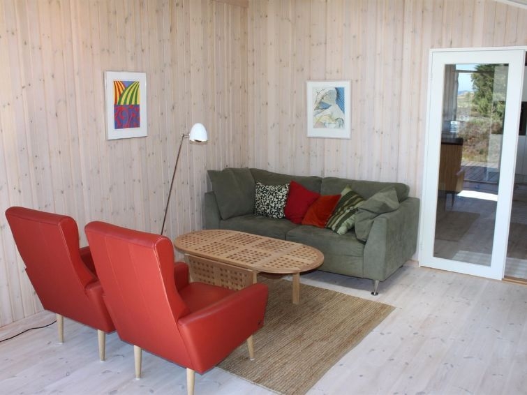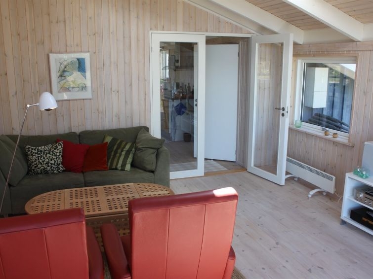 Casa unifamiliar del año 2001. A 500 m del mar. Privado: terreno en estado natural 1'500 m2. Terraza (90 m2). En el inmueble: sauna, lavadora. Aparcamiento junto a la casa. Tienda de comestibles 3.5 km. Campo de golf 1 km. El propietario no acepta grupos de adolescentes/jóvenes.