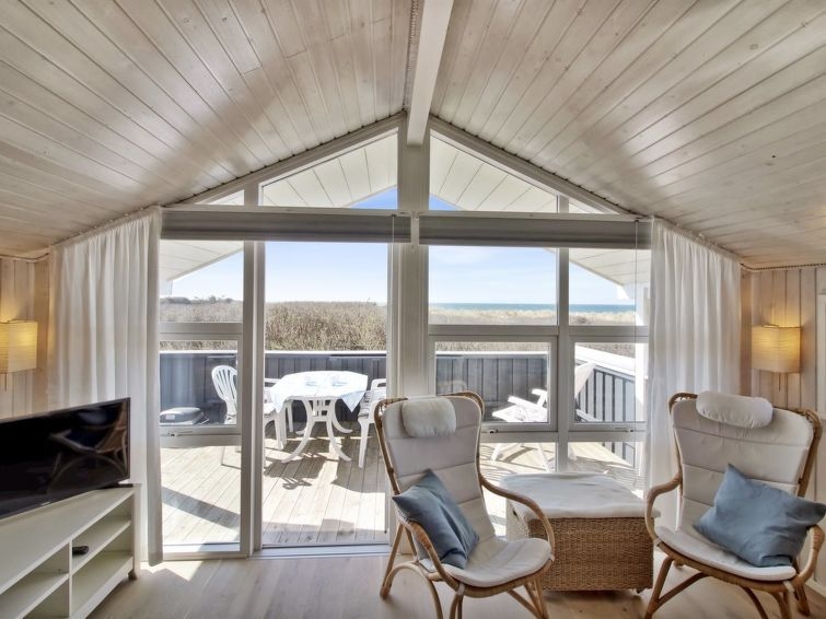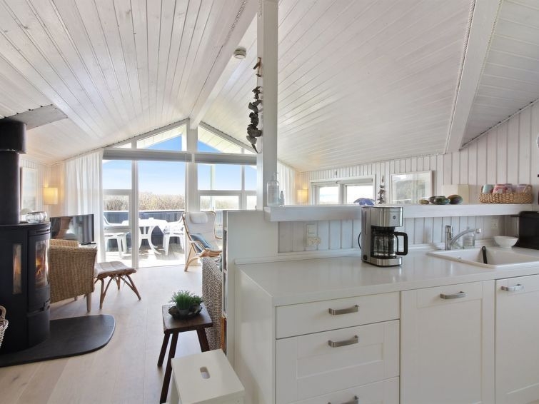 "Minka" - 75m from the sea in NW Jutland", casa 2 estancias 68 m2. Vivienda adecuada para 4 adultos. Salón con TV. 1 dorm. con 1 cama doble. 1 dorm. con 2 x 2 literas. Cocina (4 fogones, horno, lavavajillas, microondas, congelador). Ducha/WC. Vista al mar. El alojamiento dispone de: Internet (Wifi). A tener en cuenta: apartamento para no fumadores.