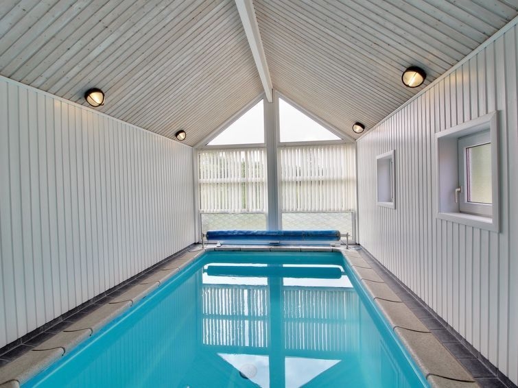 Casa unifamiliar del año 1995. A 600 m del mar. Privado: terreno en estado natural 1'200 m2, piscina cubierta (3.5 x 5 m, 1'7.5 m2, 150 - 150 cm de profundidad). Terraza (40 m2), parque infantil (columpio). En el inmueble: sauna, lavadora, secadora. Aparcamiento junto a la casa. Tienda de comestibles 900 m.