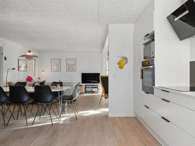 "Asmine" - 30m from the sea in Funen", casa 4 estancias 116 m2. Vivienda adecuada para 8 adultos + 1 niño. Salón con TV. 1 dorm. con 1 cama doble. 1 dorm. con 1 cama doble. Estudio 1 dorm. con con 1 cama y 2 x 2 literas. Cocina (horno, lavavajillas, 4 placas de vitrocerámica, microondas, congelador). 2 ducha/WC. Vista al mar. El alojamiento dispone de: trona, cuna (extra). Internet (Wifi). A tener en cuenta: apartamento para no fumadores.