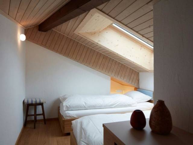 135 m2. Más información del proveedor: El luminoso apartamento abuhardillado de 4 habitaciones (135 m2) fue rediseñado de forma atemporal, lujosa y elegante por el galardonado arquitecto Özgür Keles (Biuld Inc.). El apartamento está situado en la 4ª planta de la casa número 2 en el asentamiento del pueblo "Am Dürrbach", que es una de las atracciones arquitectónicas y artísticas de Engelberg. Los internacionalmente conocidos Sgrafittos del artista Bündner Staivan Könz (que de niño fue el modelo del famoso Schellenursli) y la arquitectura muy individual de Albertus Magnus Caviezel hacen del asentamiento un lugar muy especial. Las instalaciones artesanales, los muebles de alta calidad y los detalles personales crean un ambiente acogedor y al mismo tiempo luminoso en el piso. El gran ventanal frontal ofrece una vista espectacular de los Alpes de Engelberg. El establecimiento se encuentra directamente en la estación del valle del Brunni Bahnen y a unos 10 minutos a pie del centro del pueblo. El asentamiento del pueblo cuenta con una piscina cubierta, zona de fitness, sauna y solarium. En dos plantas el apartamento tiene, un hall de entrada con guardarropa, una gran sala de estar con sofá, TV, Internet, zona de comedor y cocina totalmente equipada con lavavajillas, cafetera Nespresso y hervidor de agua. Además, 2 cuartos de baño con ducha / WC y bañera. chimenea, 6 camas en 3 dormitorios, balcón orientado al sureste (17 m2). 1 plaza de aparcamiento en el aparcamiento subterráneo + plazas de aparcamiento delante de la casa. Guardaesquís. Lavadora y secadora en la casa. No se admiten animales. APARTAMENTO PARA NO FUMADORES. WiFi gratuito. Casa / Residencia - Telesquí 140 m Apartamento abuhardillado de 4 habitaciones en 4ª planta (135 m2): 3 habitaciones dobles, salón, cocina abierta y 2 x baño/WC. Incluido: Toallas de baño y cocina, impuestos locales, garaje, uso de piscina. Excluido: Cuna CHF 20,00, fianza de CHF 300,00 con tarjeta de crédito, uso de lavadora y secadora, solarium y sauna.