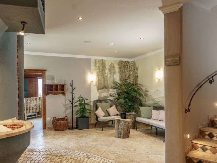 Pichl a 8 km de Schladming: Pueblo vacacional "Almwelt Austria", 1'200 m s.n. m., moderna. A 8 km del centro de Schladming, lugar tranquilo, soleado, a pie de pista. Comunitario: terreno 500 m2. Barbacoa, parque infantil (tobogán, cajón de arena), mini zoo. En el complejo: recepción, restaurante, sauna, masaje (extra). Baño turco, solarium (extra). Habitación relax, zona de spa de uso comunitario, calefacción central, secadora para botas de esquí. Aparcamiento junto a la casa. Supermercado 10 km, restaurante 25 m, estación de tren "Schladming" 10 km. Remontes, alquiler de esquís 50 m. Atracciones en los alrededores: Eisbach Wasserfall. Zonas de esquí populares fácilmente accesibles: Reiteralm 50 m. Lagos conocidos fácilmente accesibles: Badesee Pichl 6 km. Los alojamientos pueden diferir en la superficie habitable, la distribución de las estancias, el equipamiento y el mobiliario. "Holzknecht", chalet de madera 6 estancias 168 m2 en 2 plantas. Espacioso, con mobiliario rústico y agradable: entrada. Salón-comedor grande. Salón con rincón-comedor y estufa de azulejos. Cocina abierta (horno, lavavajillas, 4 placas de vitrocerámica, hervidor de agua eléctrico, microondas, cafetera eléctrica, Cápsulas de café (Nespresso) extra) con mesa de comedor. WC separado, ducha hidromasaje, bañera de hidromasaje, Sauna. Planta superior: 2 dorm., cada habitación con 1 cama, 1 cama doble y TV satélite (pantalla plana). 2 dorm. dobles, cada habitación con ducha/WC y TV satélite (pantalla plana). El salón es la sala de la casa rural. Balcón. Muebles de balcón. Vista panorámica muy bonita a las montañas y al paisaje. El alojamiento dispone de: secador de pelo. Internet (Wifi, gratis). A tener en cuenta: apartamento para no fumadores. El alojamiento es una casa tipo ejemplo o un apartamento tipo ejemplo.