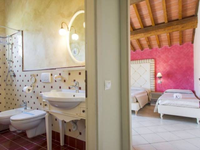 En una posición elevada con muy bonitas vistas al mar y las colinas circundantes. Resort "Il Felciaione", idóneo para niños, rodeado de árboles, prados y campos. 8 casas en el complejo. 55 apartamentos en la residencia. A 3.5 km del centro de Riparbella, lugar soleado en una pendiente, a 100 m de un bosque, a 10 km del mar, a 10 km de la playa, en el campo. Comunitario: terreno 350'000 m2 con plantas y árboles, pradera, piscina (40 - 140 cm de profundidad, Disponible por temporada: 15.May. - 25.Sep.). Terraza, muebles de jardín, parque infantil. En el inmueble: restaurante, bar, bar, Wifi, lavadora (extra), secadora (uso comunitario, extra), alquiler de bicicletas. Cambio de sábanas (suplemento extra). Cambio de toallas (suplemento extra). Servicio a domicilio de panecillos. Aparcamiento junto a la casa. Estación de carga eléctrica. Tienda 3.5 km, supermercado 10 km, playa de arena "Marina di Cecina" 10 km, piscina termal "Calidario" 43 km. Atracciones en los alrededores: Volterra 34 km, Pisa 66 km, Lucca 88 km, Firenze 120 km. La foto es sólo un ejemplo de una vivienda tipo. Gorro de baño obligatorio. Apartamento de 3 estancias 46 m2. Con mobiliario bonito y de buen gusto: salón-dormitorio con 1 sofá-cama doble (160 cm), mesa de comedor y TV satélite. 1 dorm. con 1 cama de matrimonio (160 cm). 1 dorm. con 2 camas (80 cm). Cocina abierta (lavavajillas, 4 fuegos, microondas, cafetera eléctrica). Ducha/WC. Calefacción eléctrica (extra), aire acondicionado (extra). Balcón o terraza. Muebles de balcón. Vista lejana al mar y al valle. El alojamiento dispone de: cuna hasta 2 años. A tener en cuenta: apartamento para no fumadores. El apartamento está o bien en la planta baja o bien en la primera planta.