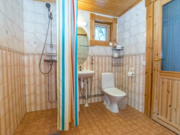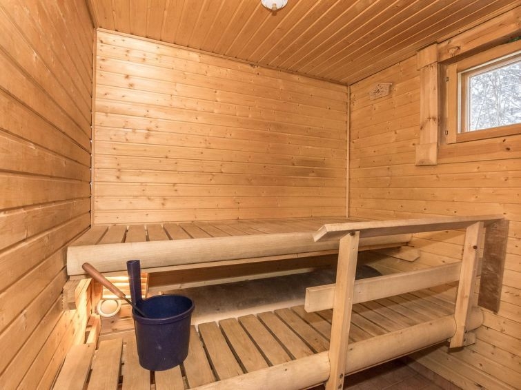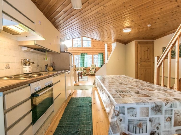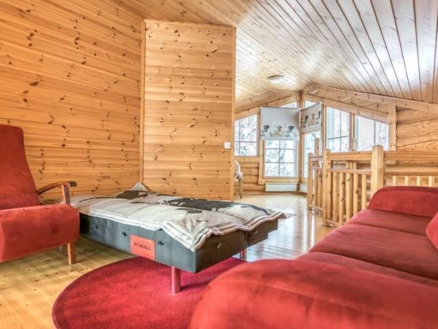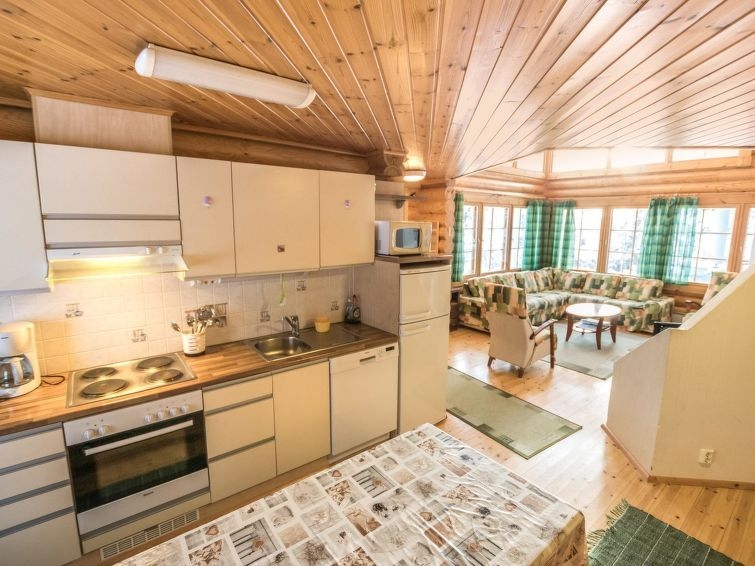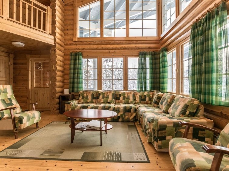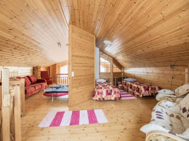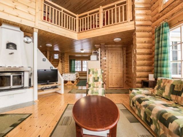 Permitido máximo 1 mascota / perro. Cabaña de troncos situada en el centro turístico de Ukkohalla, 128m2, construida en 2006. Cocina, 2 dormitorios, altillo, sauna, cuarto de ducha/aseo, aseo separado, vestíbulo, terraza, chimenea. Un sofá-cama y dos camas en el altillo. Una parrilla exterior en verano, WiFi. El precio incluye 1 bolsa de leña. Leña extra del conserje 10 euroa/bolsa Ukkohalla: Centro de turismo situado junto al lago Syväjärvi, con centro de información, tienda, restaurante, spa, centro de pistas, pistas para motos de nieve, pistas de esquí, servicios de programas, playa (más información en www.ukkohalla.fi). Distancia a los servicios de Ukkohalla 1,0 km. Aeropuerto Kajaani 86 km, Oulu 170 km, Helsinki 650 km, parada de autobús Hyrynsalmi 18 km, estación de tren Kontiomäki 66 km. Se admiten animales, vistas a las pistas.