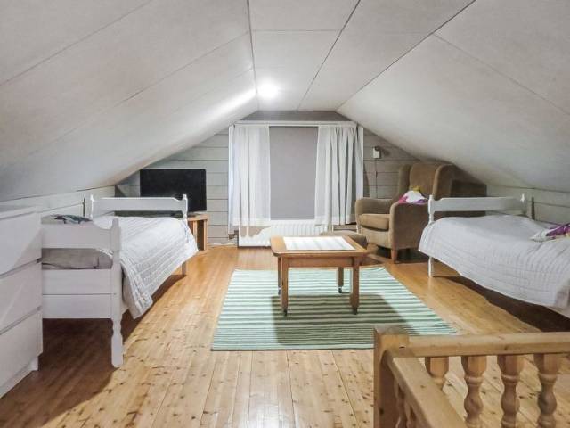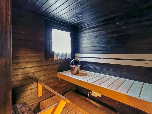 Permitido máximo 1 mascota / perro. Cabaña de madera situada en el centro turístico de Ukkohalla, 46m2 + altillo 32m2, construida en 1989, salón, cocina, 2 dormitorios con una cama doble y una litera, altillo, sauna, cuarto de ducha/aseo, vestíbulo, trastero, terraza, chimenea nueva y leña. Una cama doble y dos camas separadas en el altillo. Nota. esta propiedad no se alquila a menores de 25 años. Ukkohalla: Centro turístico situado junto al lago Syväjärvi, con centro de información, tienda, restaurante, balneario, centro de pistas, pistas para motos de nieve, pistas de esquí, servicios de programas, playa (más información en www.ukkohalla.fi). Distancia a los servicios de Ukkohalla 0,7 km. Hyrynsalmi 18 km, aeropuerto de Kajaani 86 km, Oulu 170 km, Helsinki 650 km, parada de autobús Hyrynsalmi 18 km, estación de tren Kontiomäki 66 km. Se admiten animales, vistas a las pistas.