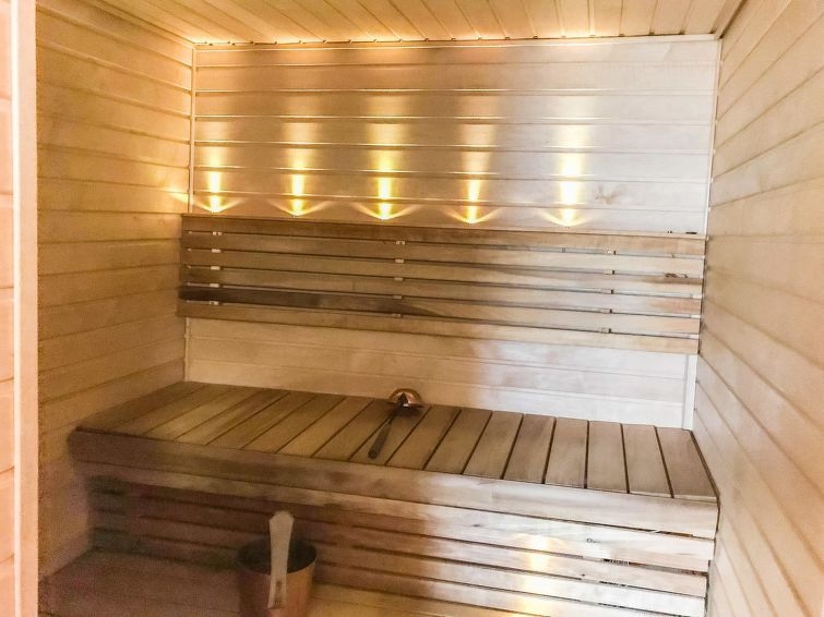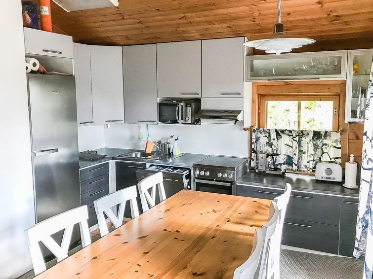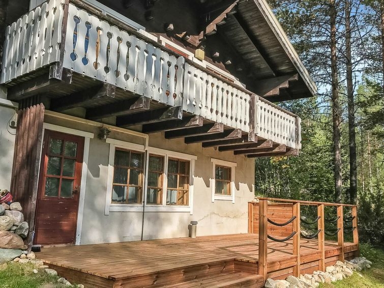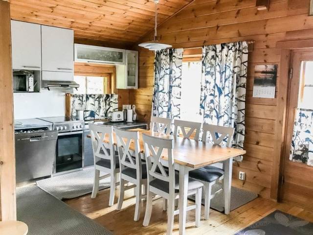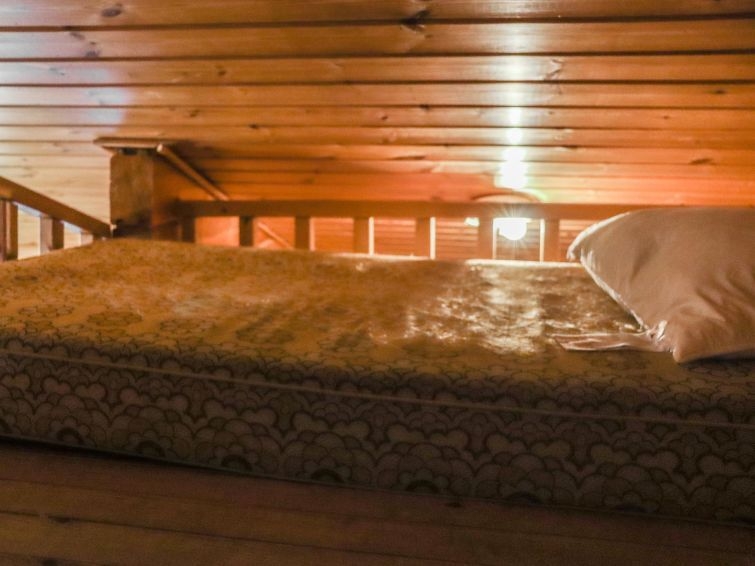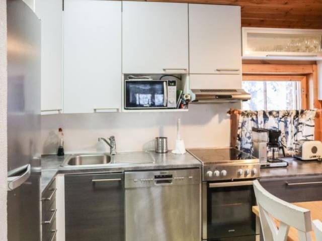 Permitido máximo 1 mascota / perro. Cabaña de troncos situada en el centro turístico de Ukkohalla, 90m2 + buhardilla 12m2, construida en 1991. Local en 3 plantas, cocina, 2 dormitorios, rincón para dormir, buhardilla, sauna, cuarto de ducha/aseo, aseo separado, habitación con chimenea que incluye una cama y un sofá-cama, trastero, balcón, terraza, porche, chimenea y leña.. Una cama doble en el otro dormitorio y una litera en el otro, 2 colchones en el altillo, un sofá-cama en el salón. Hay una bomba de aire agrio y parrilla, que no está en uso y no se alquilará a los clientes. Nota. La casa de campo no se alquila a grupos formados por menores de 25 años. El número máximo de personas en el destino es de 10 y no puede ser excedido. La casa se alquila sólo para familias y otros huéspedes que pasen unas vacaciones tranquilas. Ukkohalla: Centro turístico situado junto al lago Syväjärvi, con centro de información, tienda, restaurante, balneario, centro de pistas, pistas para motos de nieve, pistas de esquí, servicios de programas, playa (más información en www.ukkohalla.fi). Distancia a los servicios de Ukkohalla 1,0 km. Aeropuerto Kajaani 86 km, Oulu 170 km, Helsinki 650 km, parada de autobús Hyrynsalmi 18 km, estación de tren Kontiomäki 66 km. Se admiten animales. La cabaña está disponible a las 16.00h el día de llegada y hasta las 12.00h el día de salida.