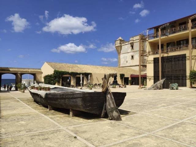 El complejo de apartamentos, una antigua almadraba del siglo XIII reformada, ofrece todos los testimonios del pasado histórico y cultural del pequeño pueblo que lo acoge: la casa del rais, el marfaraggio (almacenes de conservación y transformación del atún), el lugar de almacenamiento del muciare (barcos utilizados para la matanza), la torre, signo distintivo del pueblo de Bonagia y sede del Museo del Mar y de la Matanza, y la antigua iglesia, que alberga el crucifijo de madera original que, una vez al año, llevan en procesión los pescadores de atún. Un ambiente único que aúna pasado y presente y te sumerge directamente en una cultura donde el mar es el protagonista principal.
